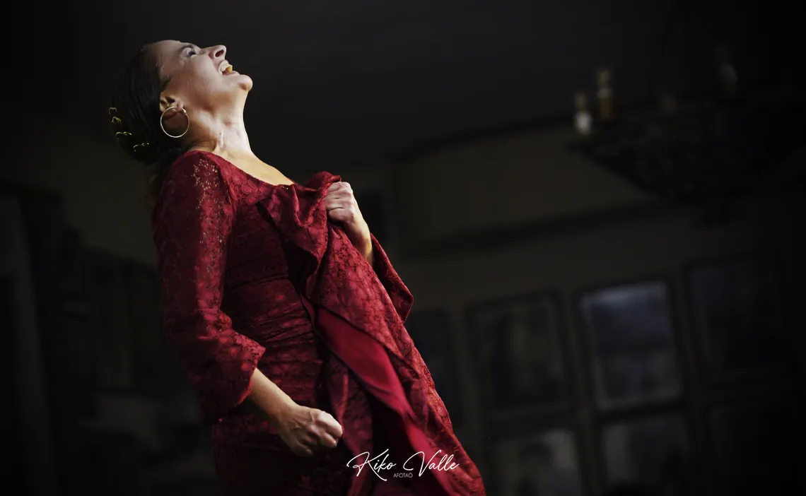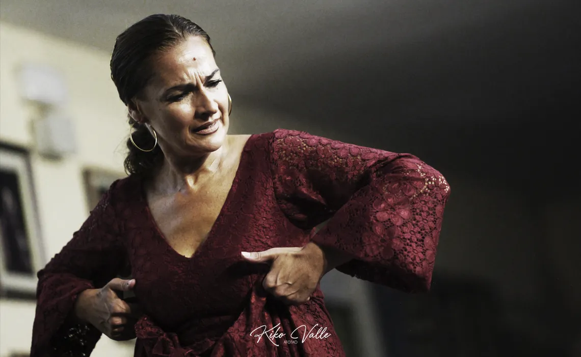 El baile de Adela Campallo me pilló desprevenío. Me dejó las carnes a jirones, llenitas de arañones y cardenales. Y además de uno de los aplausos más largos y sonaos que yo he vivío en Torres Macarena, se llevó entre los volantes del vestío una espuerta de oles y las palabras de mi boca. ¿Y yo ahora qué digo, si he malgastao con alegría un puñao de piropos repartíos? Vino Adela a descubrirme, me dejó múo. Porque cualquier intento de bosquejar su estampa se queda corto y transparenta la torpeza de mi pluma quedando en limitante ofensa describirla con un manojo de letras. Su baile hay que vivirlo, dejarlo que te atraviese y te estremezca, que te rebañe por dentro con el lamento negro de la seguiriya y la soleá punzante para aliviarte después con una juerga por bulerías. Adela formó la revolución. Zamarreó los pilares de la peña y a los aficionaos. Los despertó del letargo para anunciar que sigue aquí y que ella es, probablemente, la bailaora de Sevilla.
