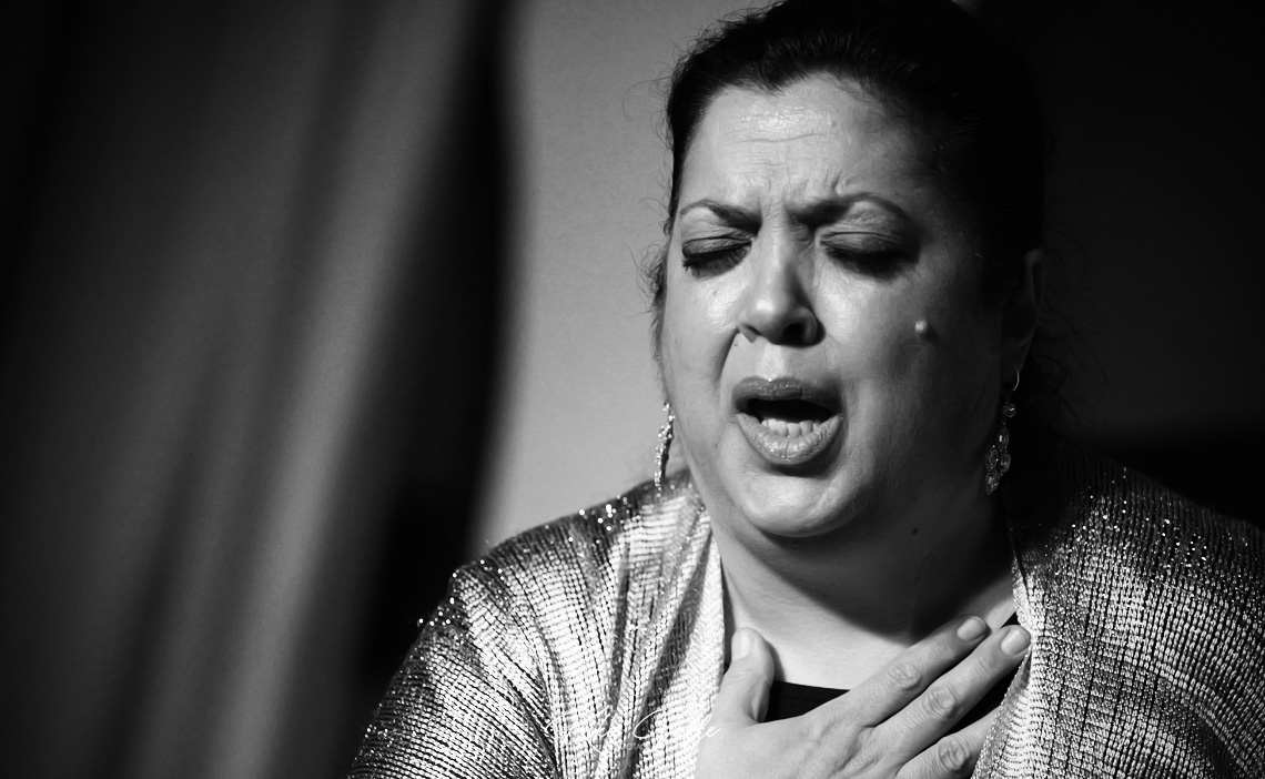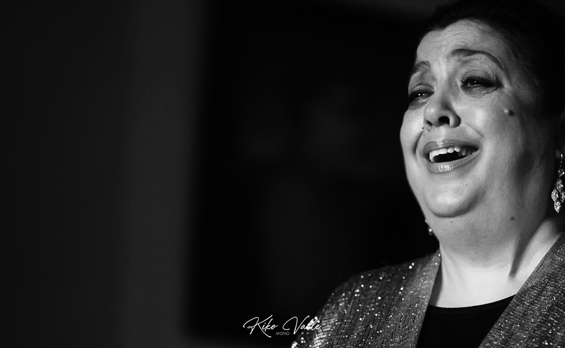 Abrió por tientos tangos pa calentá el gañote y ya empezó el respetable a saborear caramelo. Desde aquí hasta el broche, después de más de una hora de recital, Angelita endiñó sentencias en cada tercio, evocando los aires de su madre La Negra, aguantando como nadie en los bajos, limpios y llenos. Apretando en las embestidas bravías sin llegar al grito ni a los adornos de artificio. Está sobrá de facultades, su voz es hipnótica y bien timbrá, con una pronunciación y afinación cristalinas, un torrente gordo aterciopelao y un gusto exquisito en la musicalidad de su garganta de tintes calés. No se podía olvidar de Triana en la ristra de tangos que regaló. Y después se fue pa Cai por alegrías rebuscando en el pentagrama los misterios de las cadencias hermosas. Dijo el cante con su boquita de piñón. Se acordó de Sanlúcar y Las Mirris. Luego se puso sería en la seguiriya, donde le permitimos la licencia de conjugar con las variantes. No me dolió tanto. Pero por soleá y bulería por soleá me dejó los sabores de Utrera sin remedos, recordándome a Perrate y a Fernanda, aunque empezó y remató en Alcalá. La Serneta, La Andonda… ¡Qué bien se queja esta gitana! Y dejó los restos por bulerías a zamarreones de soniquetes morenos. Una pechá de letras a cual con más jinque, engarzando dos o tres fandangos en la amalgama de los doce tiempos, cuplés para Lola, A tu vera, el homenaje a Gaspar y su leco lastimero, una toná y el Carcelero de Caracol, además de la pataíta de gracia con la que echó el cerrojo. ¡Qué bien cantó Angelita!