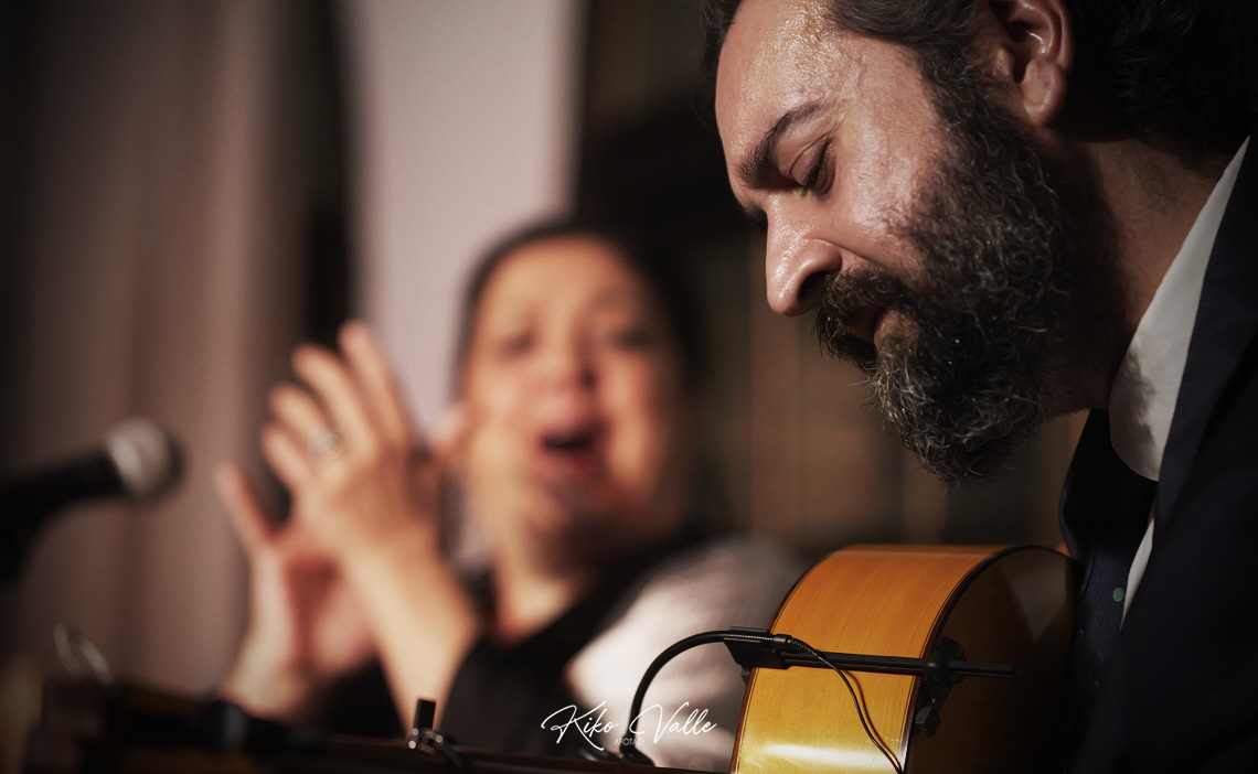 La guitarra de Paco Iglesias la acurrucó con colores morenos. Pulcra, servil, muy flamenca, siempre al pie pa respondé en el momento justo los envites del cante. Recortaíta y brillante, con alzapúas rancios y falsetas de hoy y de siempre. Las palmas de Tate Núñez y Ramoni marcaron bien los jaleos y el compás.