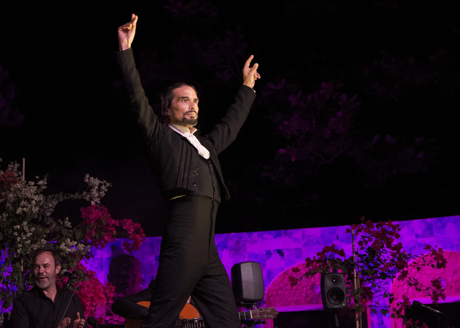 El Canito y los melismas resquebrajaos del gañote de bronce de David El Galli echaron el cante a los pies de Juan de Juan. El Petete marcó sin mancha el compás. La guitarra pulcra y fina de soníos marcheneros de Paco Iglesias redondeó el cuadro para iniciar el baile por romances a Morón, continuar con un interludio por fandangos y abrochar el último baile por soleá. Aquí empezó el disfrute del festival. Porque Juan está extraordinariamente loquito y te zarandea con el calambre de sus recortes y el fuego de los desplantes, siempre rotundos y potentes, cuajaos de jondura. Juega a acordarse de los viejos y cada uno de los pasos que regala lo recrea tamizado por un prisma de genialidad que roba miradas y oles. Fueron muchos los bailaores en el público los que no se contuvieron en llenarle la talega de jaleos. La soleá crujió por solemne. Pesó cien quintales por la contención en los paseos, la intensidad de sus ojos, el gesto de desolación y dolor. Se mascó en los arrastres, en sus puños y cuando desató el grito en sus pies precisos y contumaces. La estética cuenta. Y Juan se ciñe en un vestuario tradicional que lo imbuye de un halo especial de bailaores rancios y modernos a la vez, porque los reinterpreta aunando la frescura de quien tiene la sesera bien amueblada para esto con el venero esencial de la raigambre. Ahondar por aquí en su definición es casi una ofensa. Tenéis que sentirlo.
