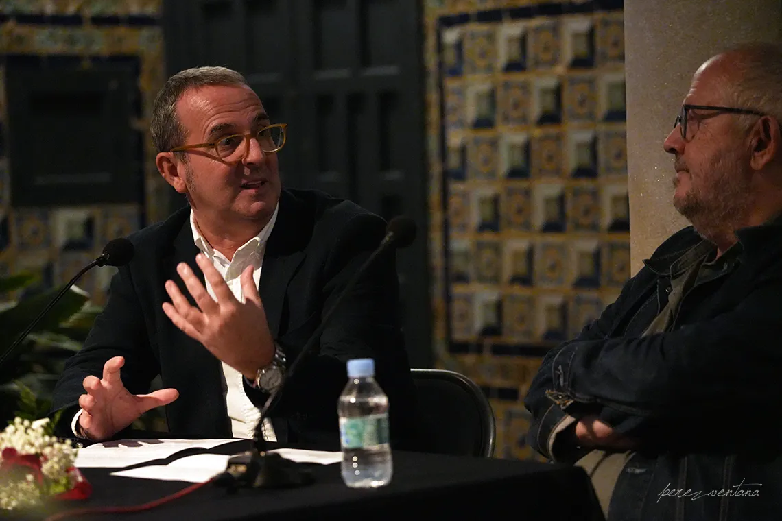 «Fernando era caracolero, pero eso no le coartaba a la hora de definir a Manolo Caracol como una especie de buey cansado frente al torbellino de colores que era Lola Flores», añadió Juan José Téllez, que ha firmado obras sobre Paco de Lucía, Chano Lobato y Carlos Cano, entre otros, y que recuerda el máster en vena que supuso estar hora y media con Beni de Cádiz cuando solo tenía veinte años allá en Prado del Rey mientras Quiñones dormía la siesta. «Fernando también escribía letras flamencas, Andalucía en pie fue un espectáculo a través de sus libretos. Y decía que cantaba ‘con poquita voz pero desagradable’. No es así. En algunos vídeos se le ve cantando fandangos, aquella letra de los soldaditos de España están cayendo a millones por sacarle las castañas al conde de Romanones».