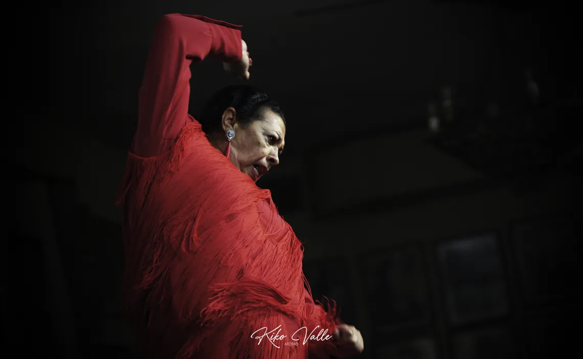 Llegó solemne la soleá. Concha desparramó los mandamientos del baile recio y gitano por cada uno de los jirones y flecos rojos de su vestío. Dicen que la veteranía es un grado. Y en el caso de Concha, una espuerta. Porque supo condensar la esencia sin ostentaciones, sin dejarse los pies a zapatazos apuntillando las tablas, bailando predominantemente de cintura pa arriba, con su cara, los virajes, los desplantes, un braceo de ensueño y las figuras que dominan solo las que saben. ¡Qué manera de pegá arañones con una mirá! ¡Qué forma de estrujar el izquierdo bailando paraíta! Concha ya no tiene que demostrar nada. Pero señaló las vereas por donde rondan los repelucos, el sendero para tocar los corazoncitos y dejarlos compungíos. Le hizo un monumento a la soleá. Moi se fajó los centros henchido de emoción y jirió con el cante, meciendo la media voz, mascando los tercios y rajando las embestidas provocando escalofríos. El Pechuguita le regaló los ojos y el sitio admirando el estado de gracia de su compañero. Aunque él no se quedó atrás, porque cada día canta mejor. Y contagiao por la sensibilidad que rebosaba en el entarimao, escarbó en las entretelas de su pecho para entregarse enterito a los pies de Concha y sobre los seis ríos de plata de Curro, conformando el ritual de lo jondo, la ceremonia de los metales primitivos y los ecos viejos de oro molío. Dolieron la salía y las fatiguitas de Talega en el tragaero de Moi y las cadencias de La Andonda o La Roezna en la nuez de El Pechuguita. Concha le bailó al cante. Y nos mangó la respiración con su temple, sujetando el tiempo. Fue capaz de doblegar a la afición sin adornar el baile. La técnica sirve. Pero Concha es ya toda una obra de arte. ¿Pa qué queremos más?