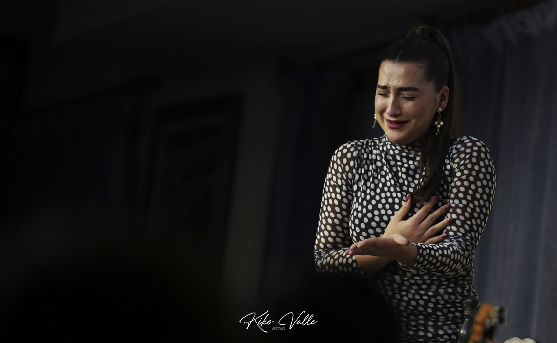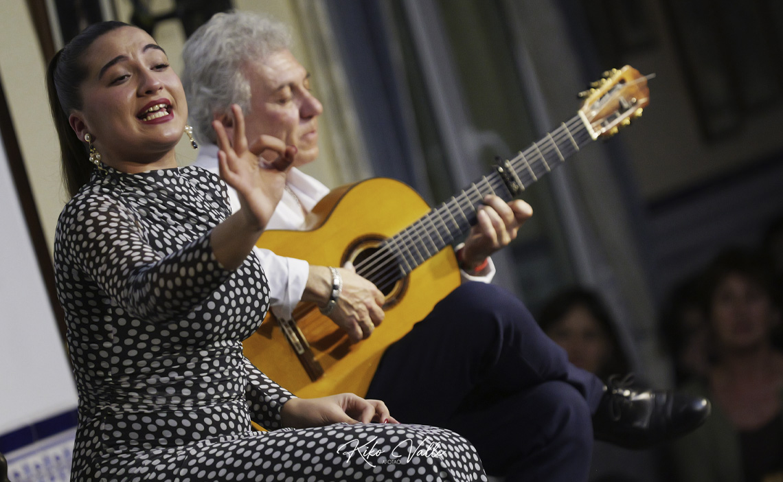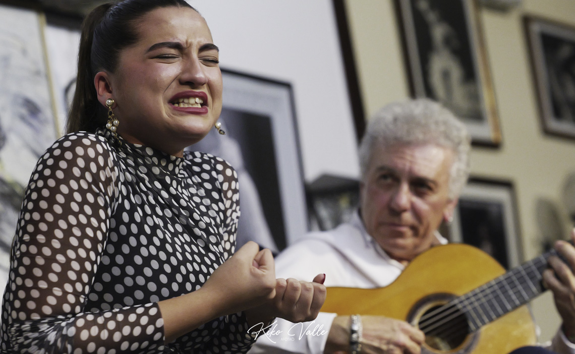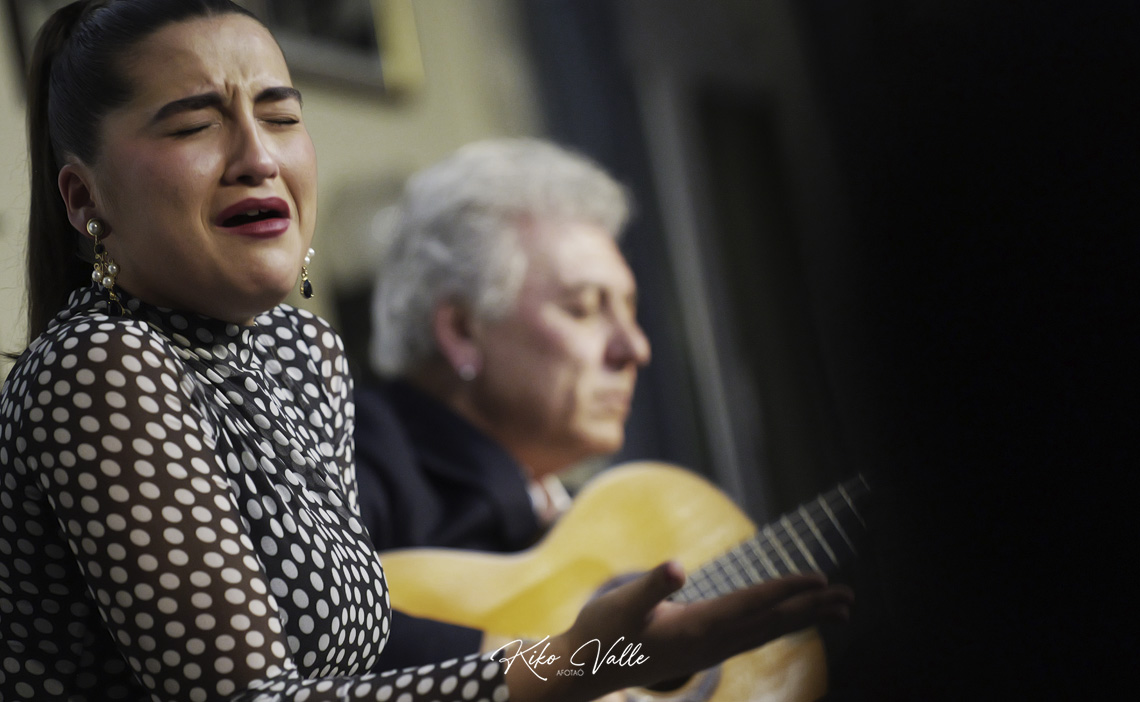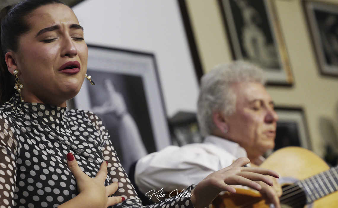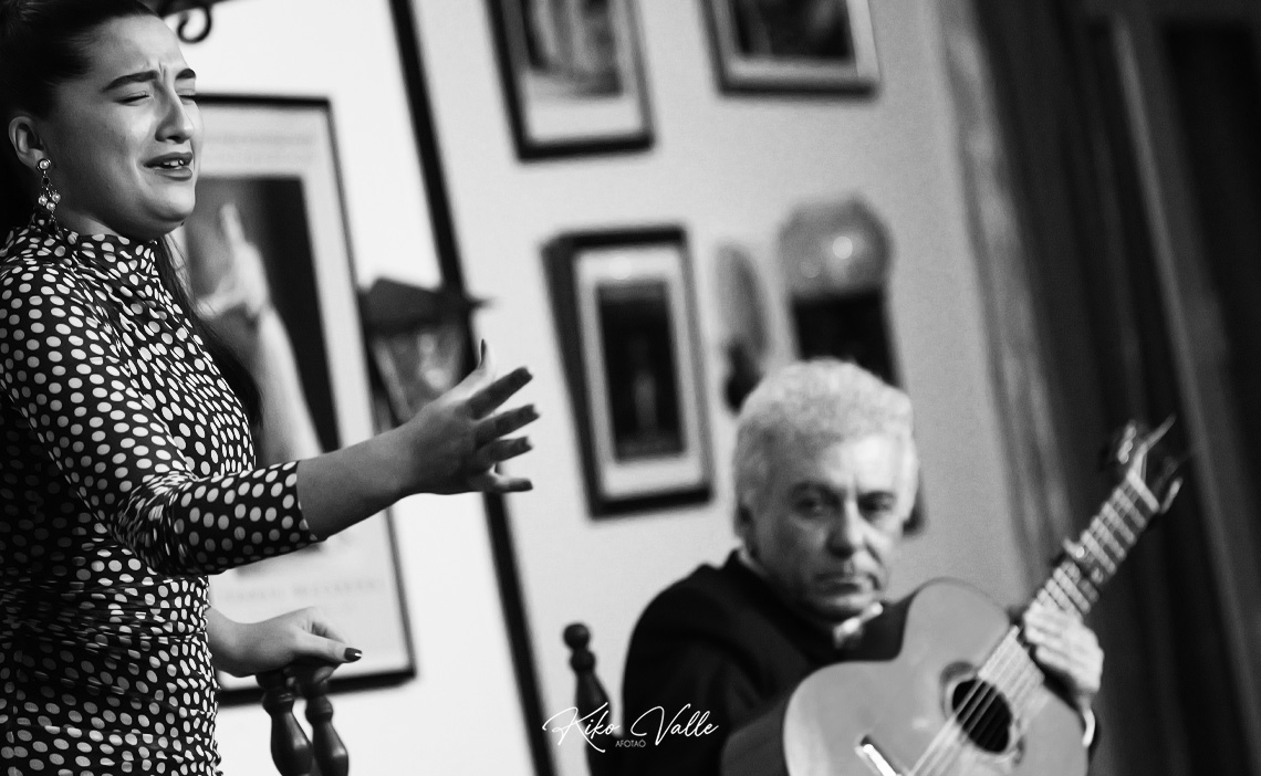 La niña, porque todavía lo es, viene acompañada por los puntales que están formando su camino con sabiduría e inteligencia. Las cosas en su justa medida. Juan y Charo, sus padres, que crearon este diamante para el Flamenco. Y su maestro tutor y guía Manolo Sierra. Con su conocimiento y su honestidad infinita están tallando todas las facetas de esta Cantaora, en mayúsculas.