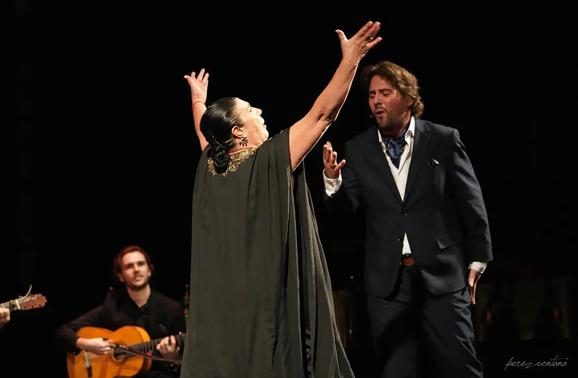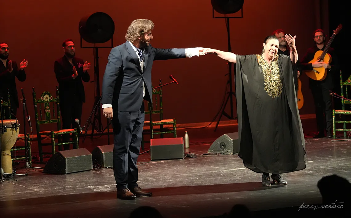 Es lo que demostró en un espectáculo redondo y de muy buen gusto. Desde la elección del elenco y el repertorio hasta la forma de moverse por el escenario. Es mu artista, se come las tablas a bocaos. Y sin ser gitano, aunque tiene un refregón, es más gitano que muchos gitanos. Por eso se rodea de ellos y se camufla de una manera que lo hace pasar por el que tiene ocho apellidos de cal. Pero sin esconderse. Todo lo contrario: dando siempre la cara, el pecho y el alma cada vez que abre la boca.