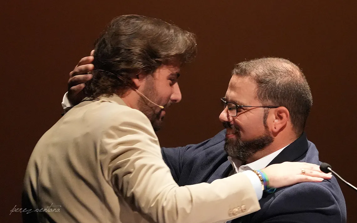Por todo ello, llamo al escenario con el aplauso de todos ustedes al justo merecedor de La Venencia Flamenca al Cante de 2024, Juan José Amuedo Galán, Juan Juanelo.