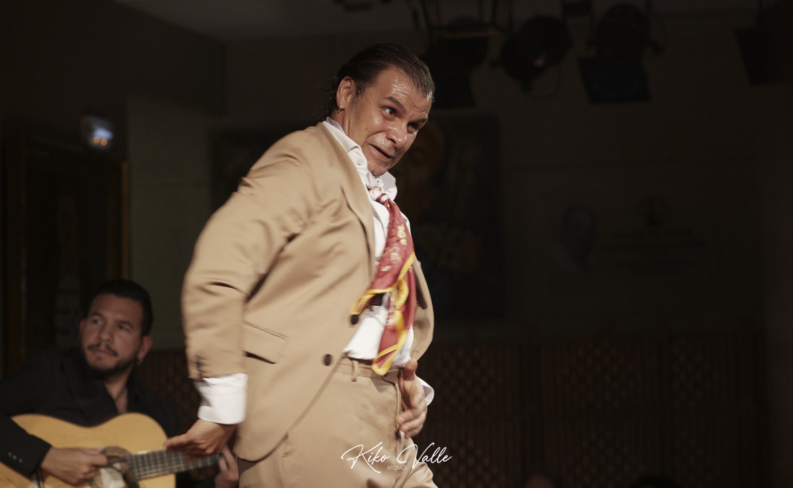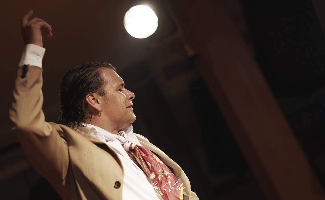 Juan y Miguel rajaron el aire por tonás retorciendo los mimbres de su cante anticipando el llanto por seguiriya. Fernando salió al encuentro y se puso en medio a la llamada de las ducas para dolerse y sufrir la pena que ahoga. Echó las higaíllas desde la salía al macho de El Tuerto La Peña. Hay una línea delgada como filo de navaja entre la teatralidad impostada de la exageración o la absoluta y apasionada entrega de quien no entiende esto sin darlo todo. Fernando la trazó cayendo al lado del corazón, asestando puñalaítas con los paseos, zapateaos y en los silencios, que pesaron quintales de jondura gitana.