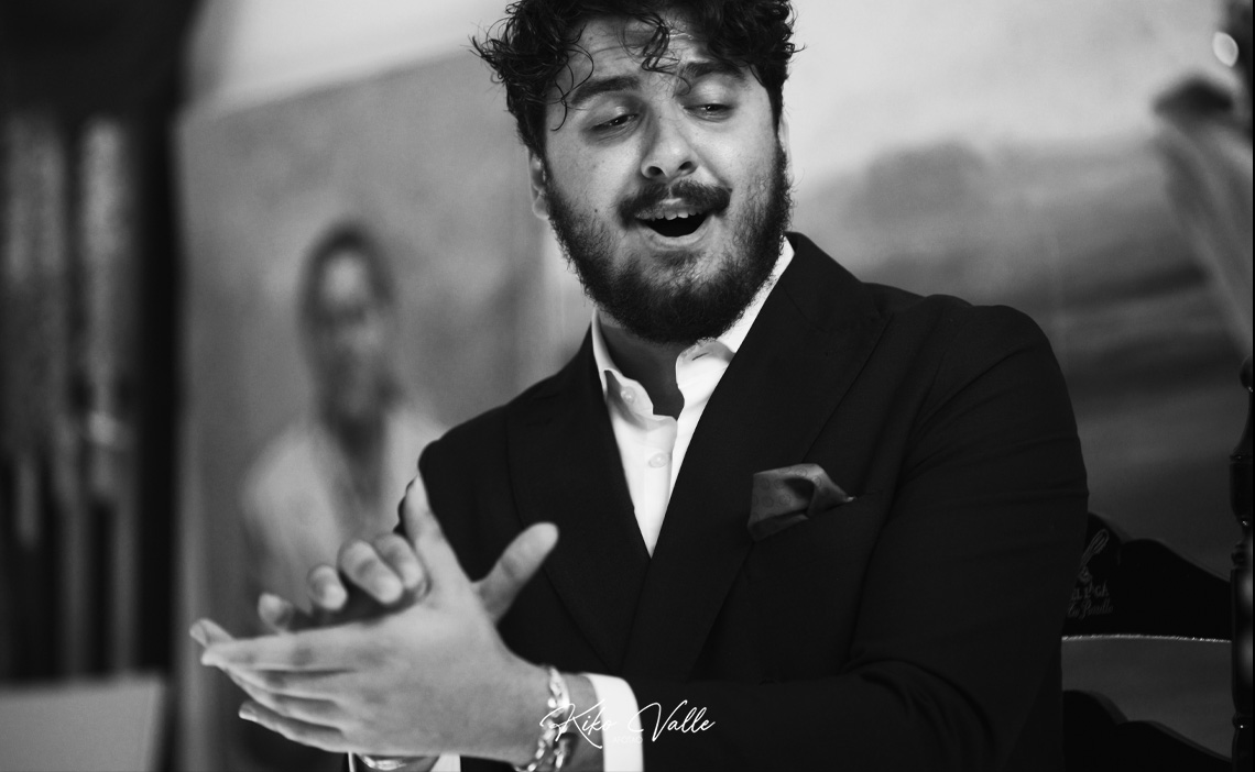 Cantó con la voz recia y gorda, acurrucando en su garganta quintales de jondura y conocimiento. Y a pesar de su insultante juventud se le nota la afición porque toma cositas de aquí y de allá de las figuras de su tierra, como hizo al mirarse en El Torta. Pero sin remedos ni imitaciones. Porque le manga giros a todos y no suena a ninguno. No se pierde en florituras y va al tajo. Su voz es potente y clara. Y sus hechuras cantaoras se jincan en el menos es más. Tiene miga, hay maera.
