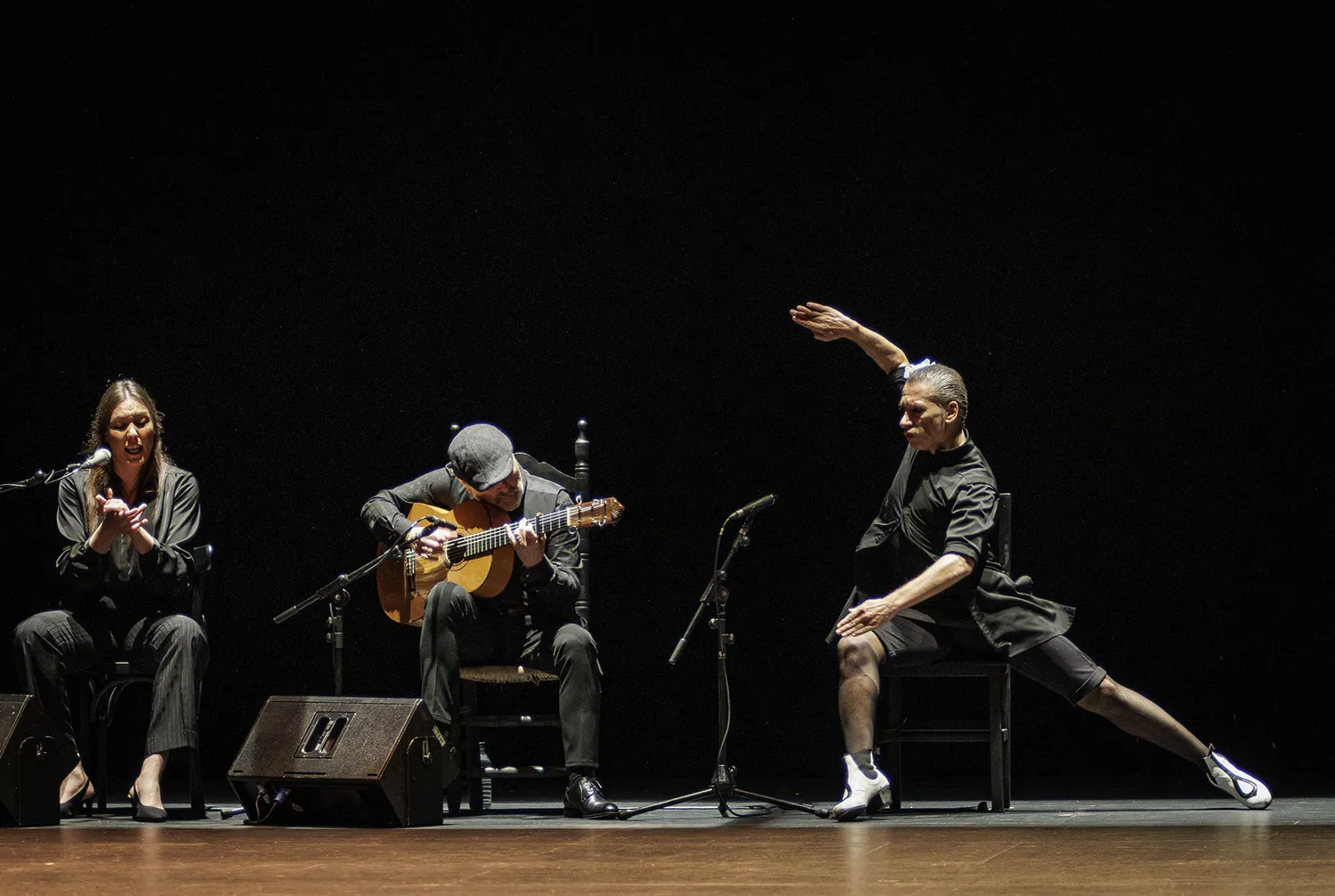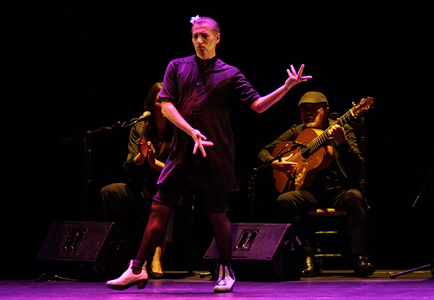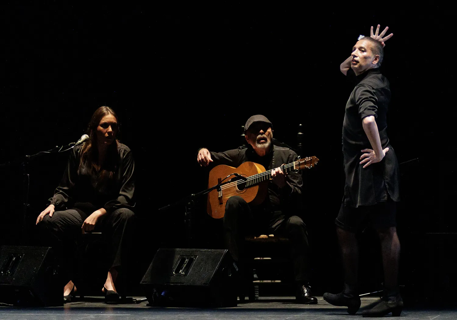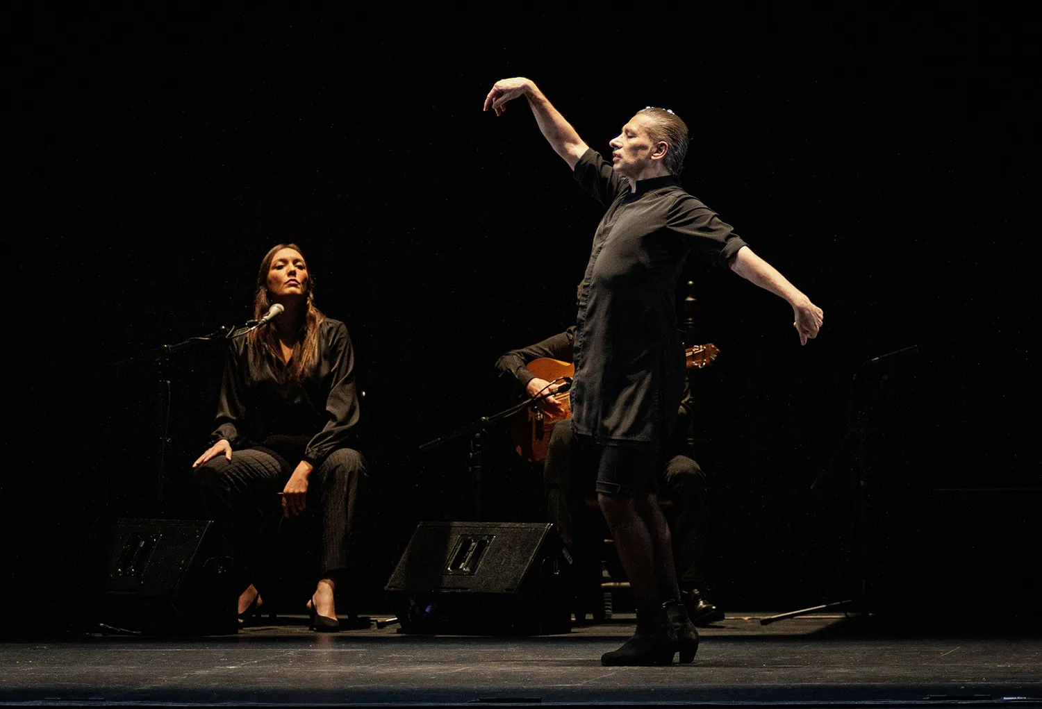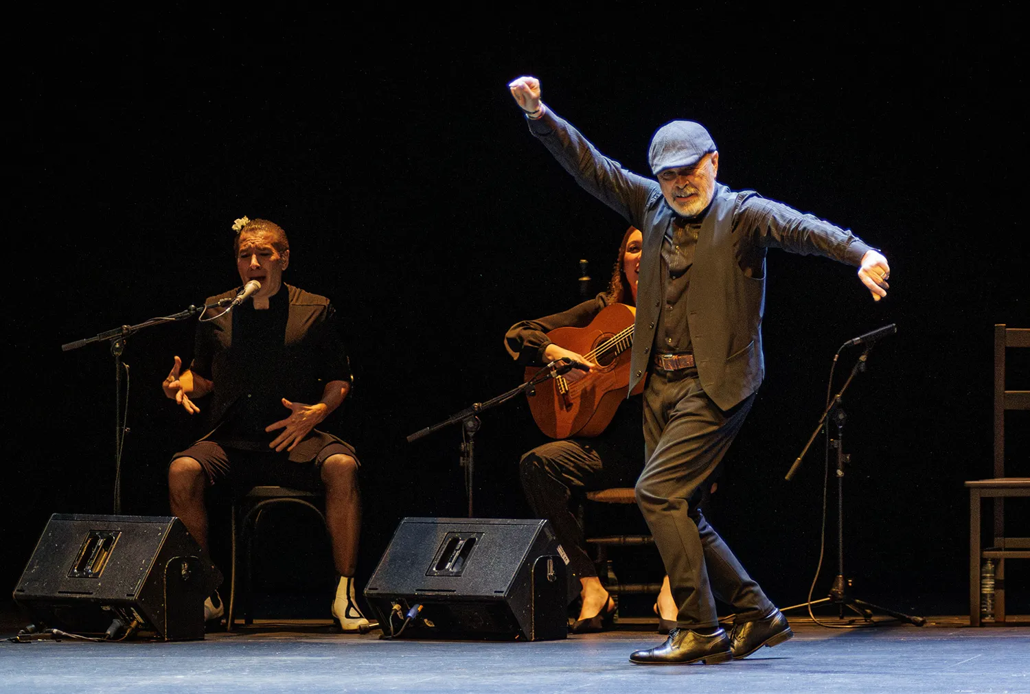 Este Galván de La Edad de Oro, eso sí, todavía se aviene a los palos establecidos y reconocibles del flamenco. Bajo un diseño de iluminación que habría merecido la aprobación de Caravaggio, el bailaor escoltado por la joven voz de María Marín y la sabia bajañí de Rafael Rodríguez El Cabeza va a ir desgranando un repertorio clásico donde caben la soleá, la seguiriya, los tientos y los tangos, alegrías, las sevillanas, un pasodoble o unas bulerías con oportunos ecos de La Paquera… Lo que no es para nada clásico –lo han adivinado– es Israel Galván.