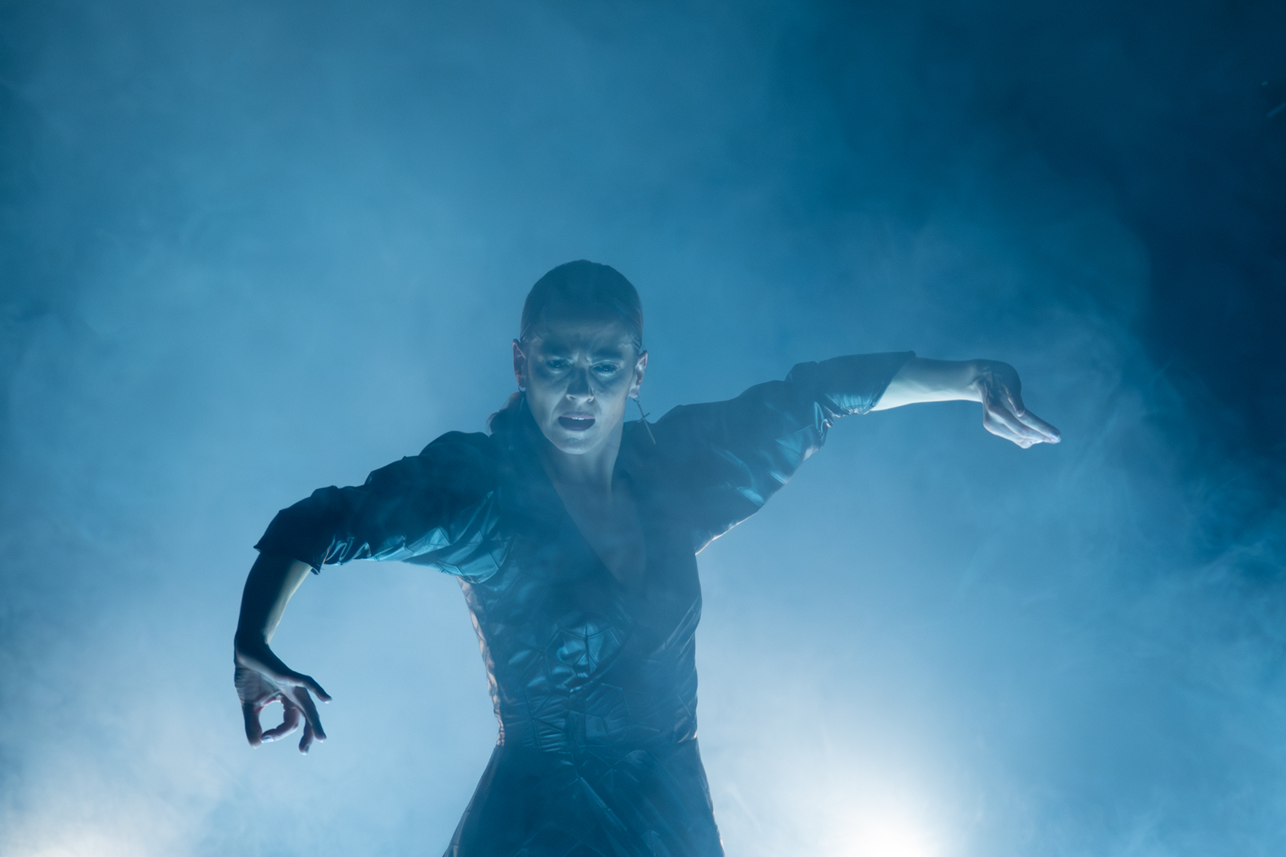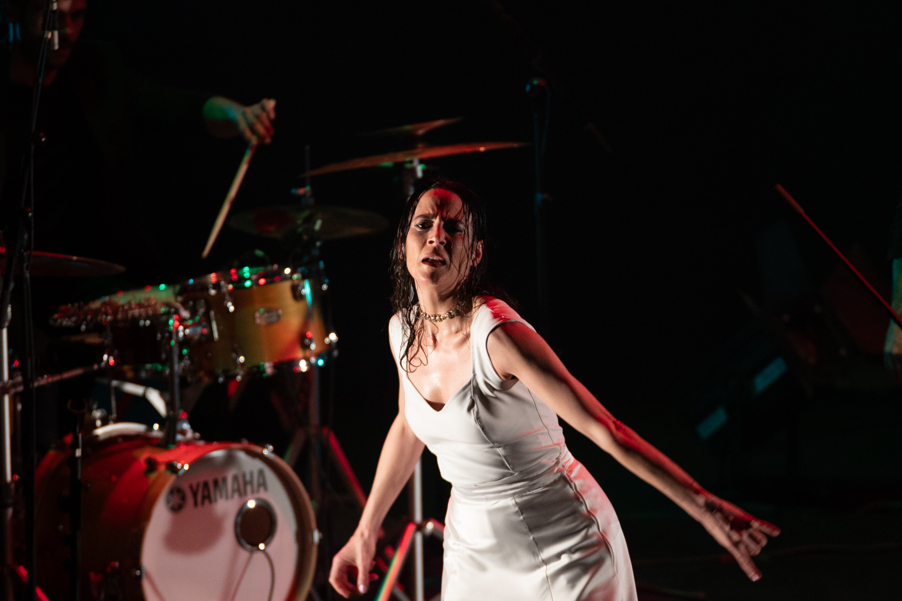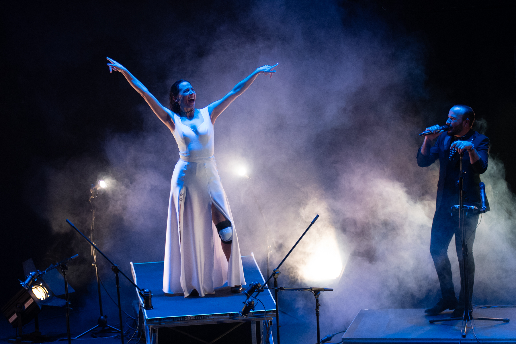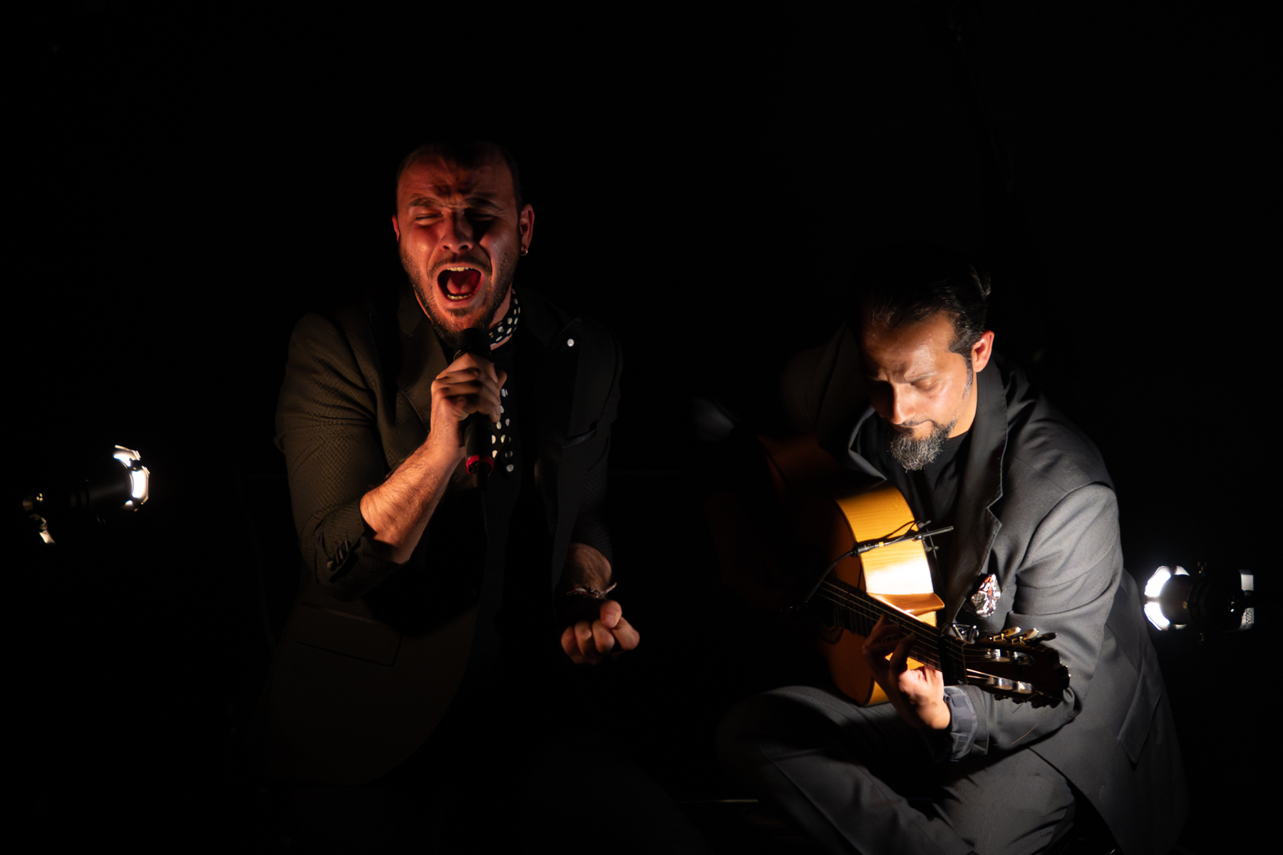 Es una fantasía recurrente entre los flamencos: recordemos, por ejemplo, al Morente al que apodaban –unos cariñosa y otros peyorativamente– el cantante, y que desde luego logró sentirse como tal en su síntesis de arte jondo y punk. O el Paco de Lucía que inventó su sexteto para poder equipararse en potencia sonora y visual con las bandas rockeras ante grandes auditorios. Piñona sigue en cierto modo esa senda, rodeándose de una banda muy enérgica, especialmente en el tándem bajo-batería de Juanfe Pérez y Javier Rabadán, pero también en el cante vehemente de Manuel Pajares. Las luces crudas, el escenario sombrío y la máquina de humo, así como un vestuario que incluía unas llamativas rodilleras, hacen el resto.
