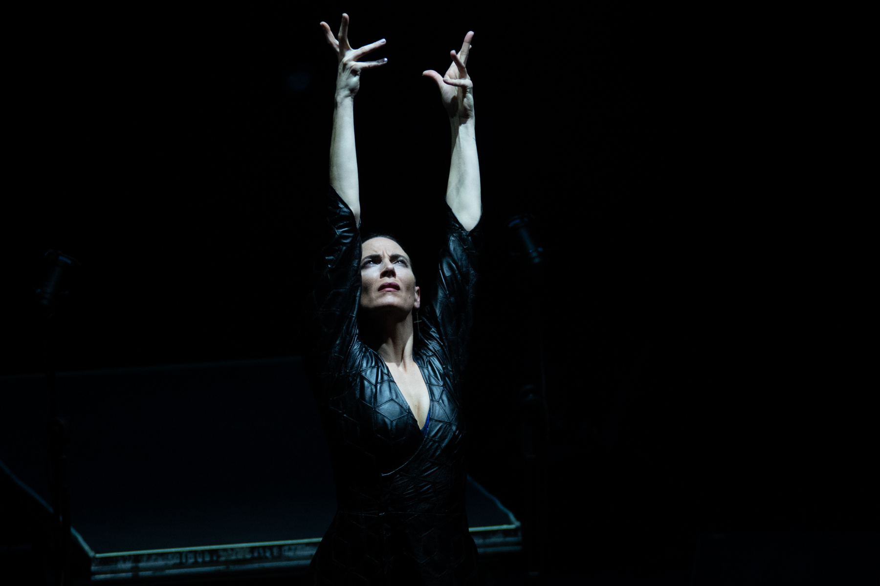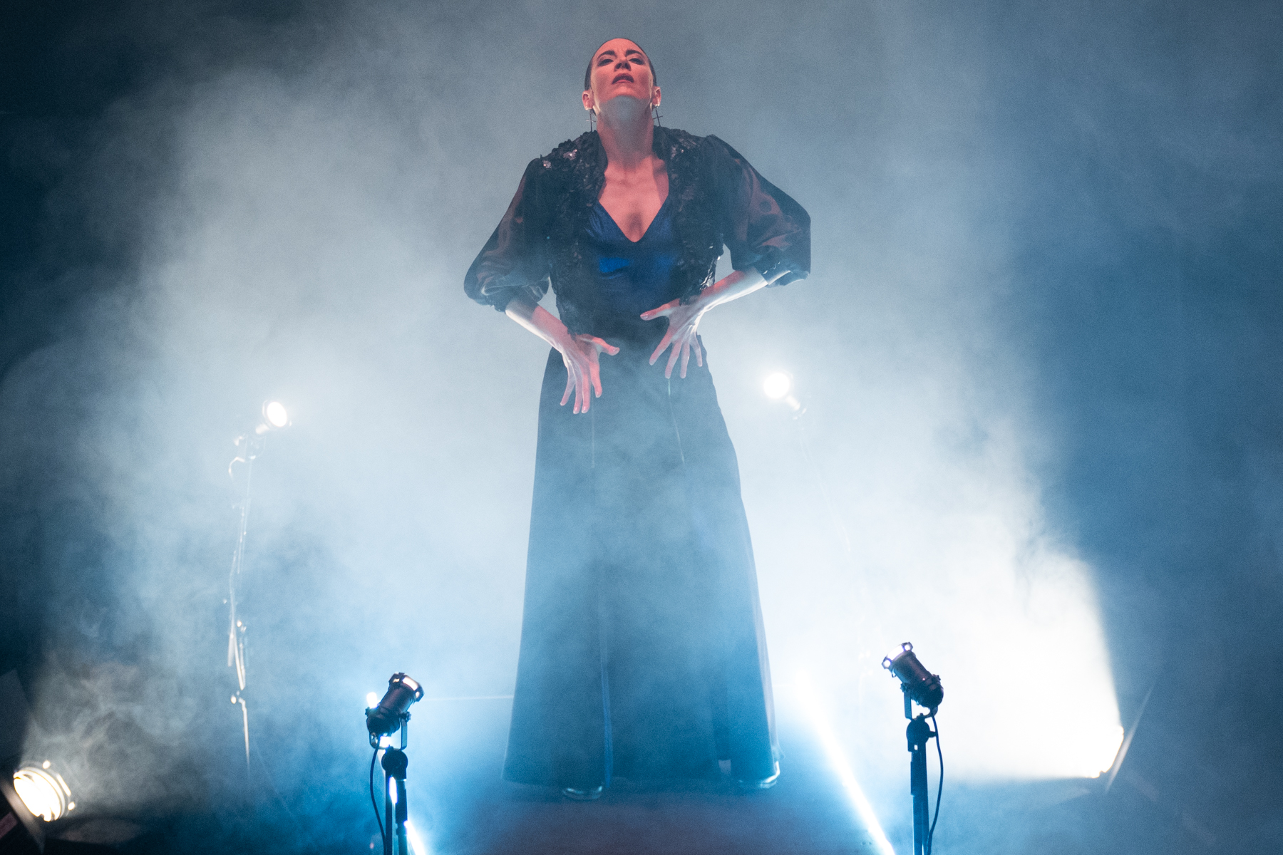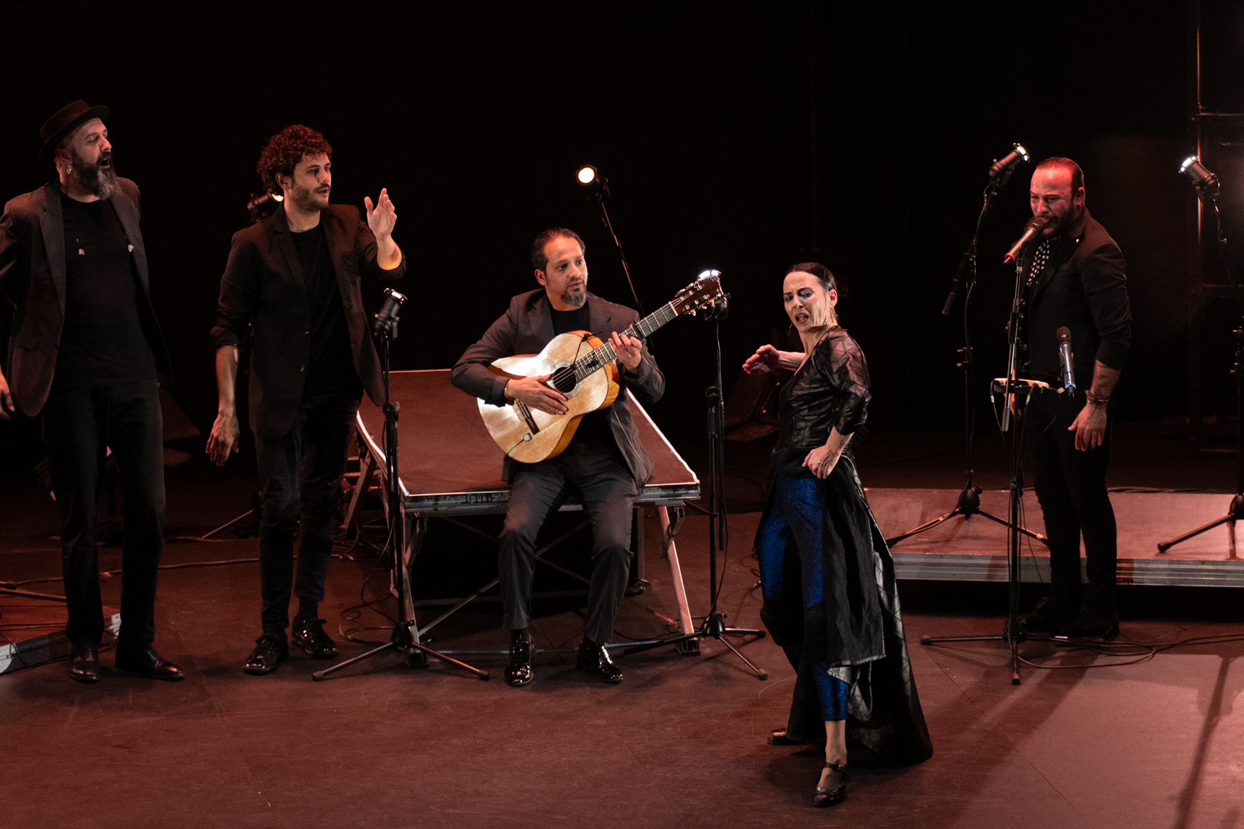 Fantásticas las peteneras, la pieza instrumental con los músicos solos en escena y los tangos ya casi al final del espectáculo, con ese colofón a modo de apoteosis disco. El rostro exultante de Lucía revelaba que el propósito estaba conseguido, que había logrado sentirse estrella del rock sin dejar de ser lo que es, flamenca por los cuatro costados. Lo cual no significa que el montaje, como todo estreno, no necesite ciertos pulimientos: principalmente en cuestión de ritmo, donde se revelan ciertos problemas de fluidez y se abusa de las pausas en busca de la estampa, de concreción del relato y de armonía del conjunto, especialmente en lo que se refiere a la sonanta de Ramón Amador, sepultada bajo los decibelios de sus compañeros la mayor parte del tiempo.