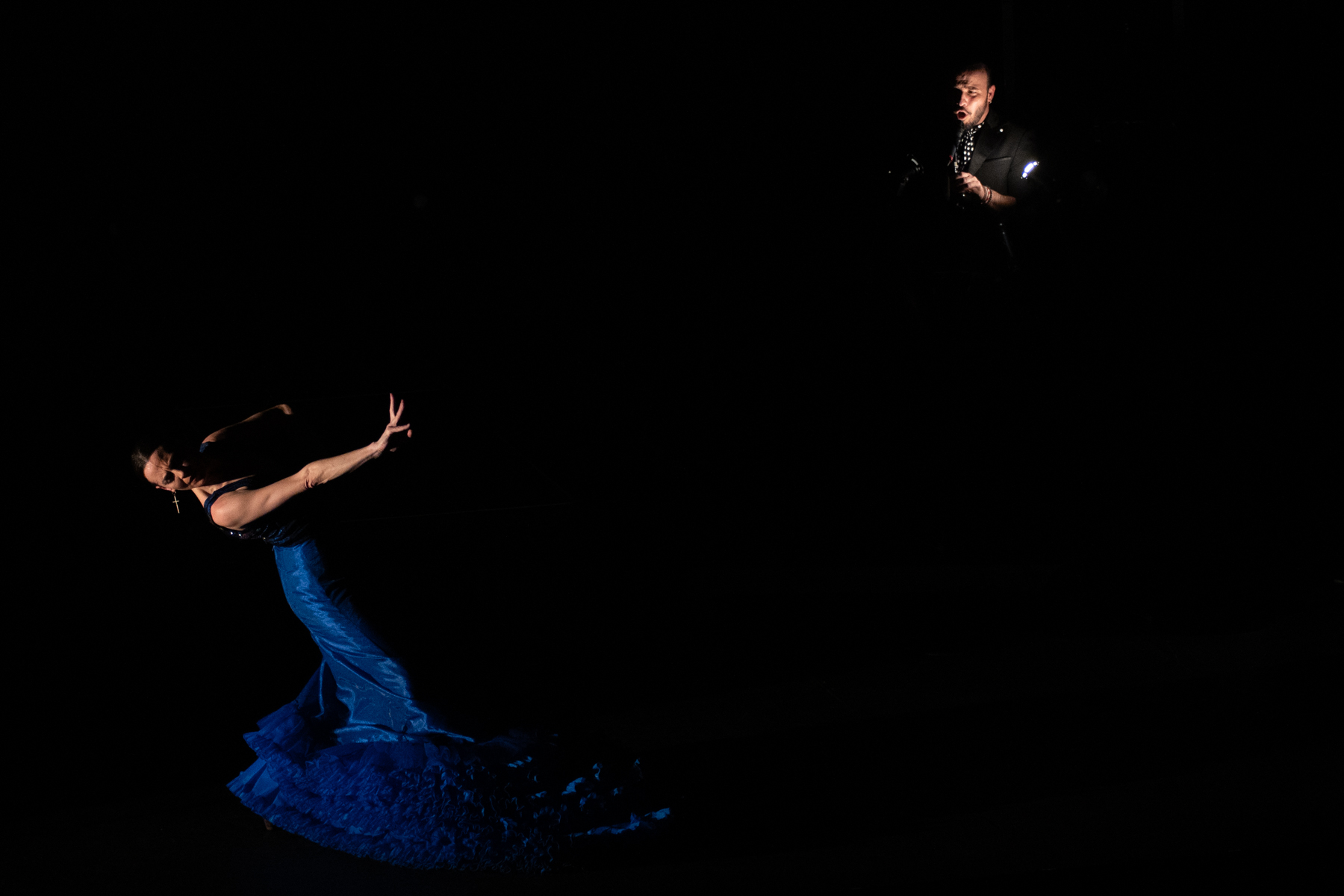 Empieza la jimenata bailando la Rima V de Bécquer haciendo gala de su especialidad, el movimiento de brazos, para ir avanzando en un repertorio donde íbamos a pasar de los aires caribeños de Pastora y su Madúralo: La Mora a la guajira de Gracia de Triana, y de ahí a la Adela del Maestro Rodrigo con dedicatoria en directo, vía telefónica, al padre de la bailaora. Esa conexión espontánea, a la que ya nos van acostumbrando los astros del pop, no fue quizá tan inusual como el hecho de que La Piñona tomara el micro en varias ocasiones y se dirigiera al público como suelen hacerlo los cantantes. ¿Acaso los bailaores son mudos? Lucía quiso demostrar que no, y quebrando esa regla no escrita acabó incluso cantando, muy bien por cierto, por María Jiménez.