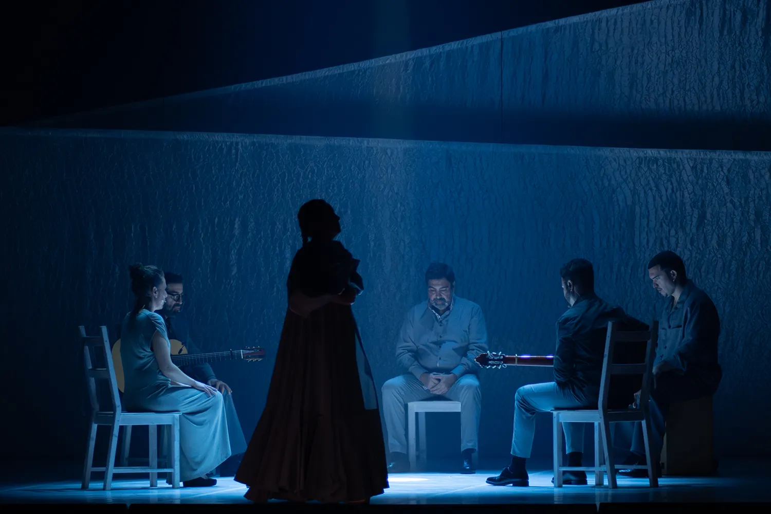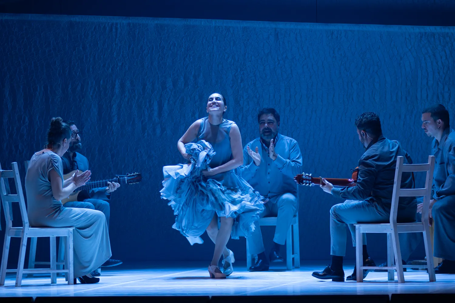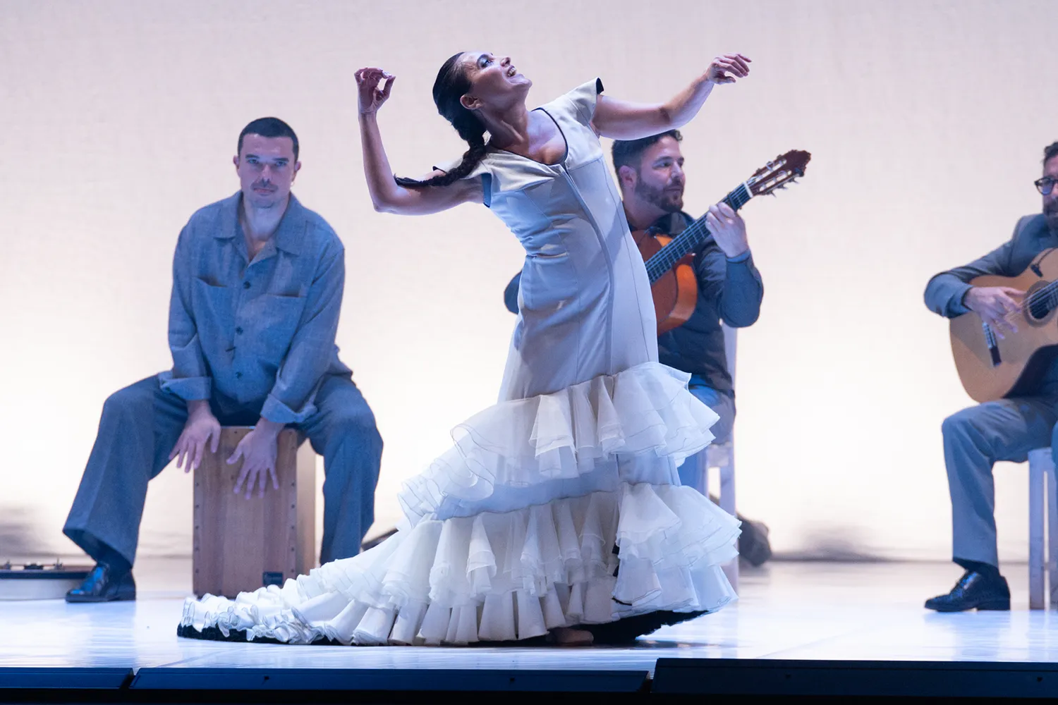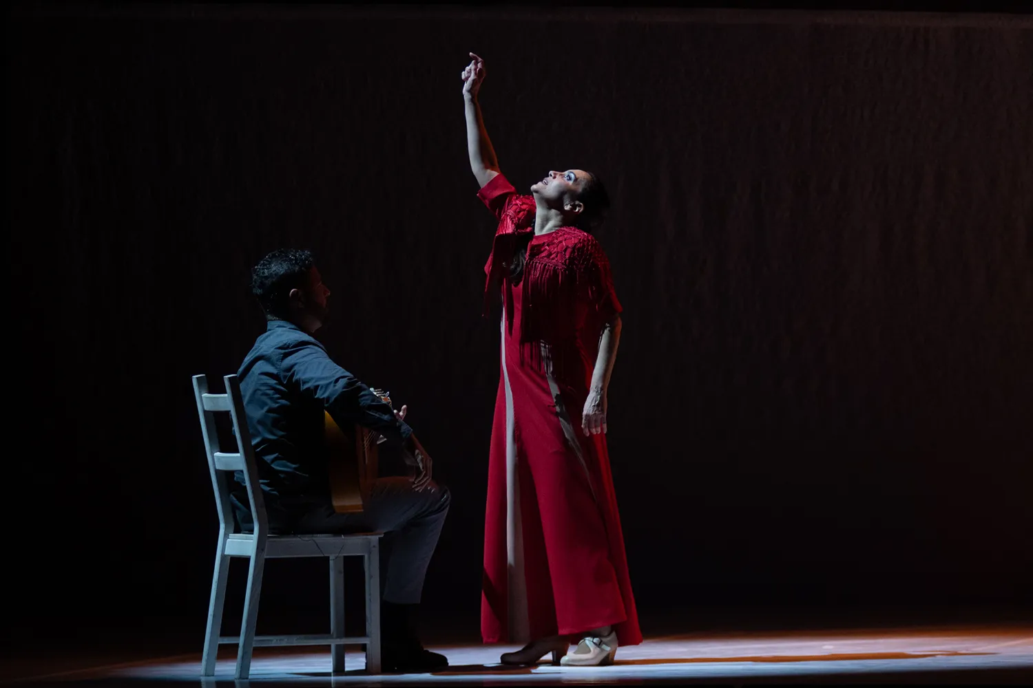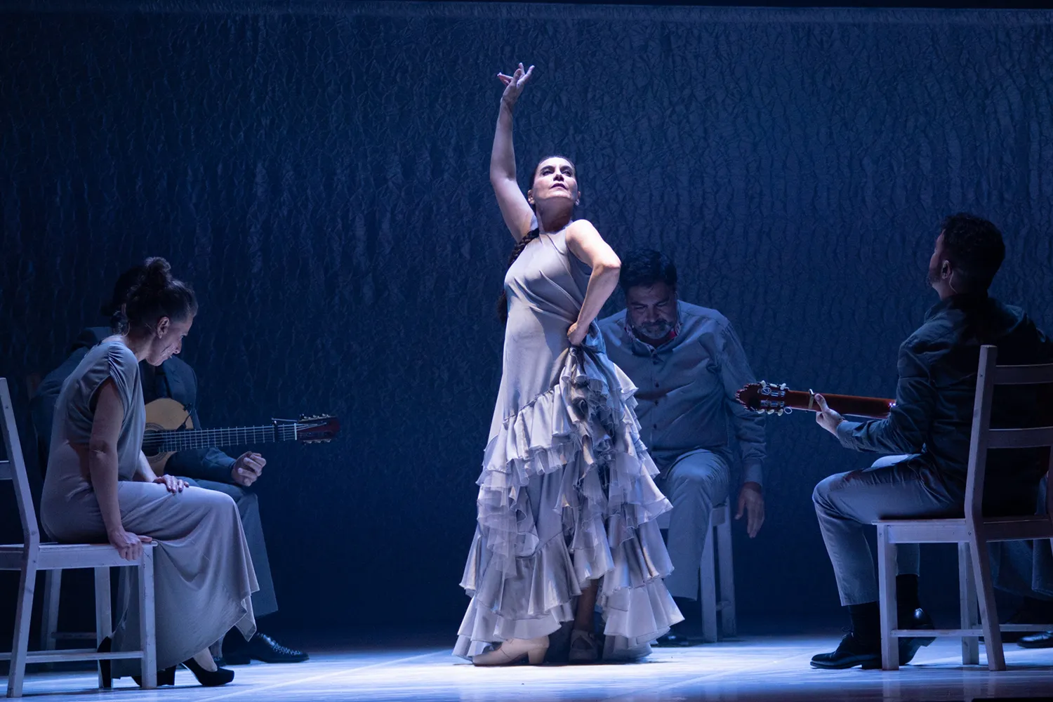 Este es el rasgo dominante en el montaje, que atiende, igualmente, a Polimnia, asociada a los cantos sagrados, y a Erató, la musa que inspira a guitarristas como Jesús Torres y José Luis Medina a fin de que Rafaela Carrasco evidencie desde la farruca cómo la propuesta a lo que aspira es envolver al espectador en una experiencia de intensa visualidad poética.