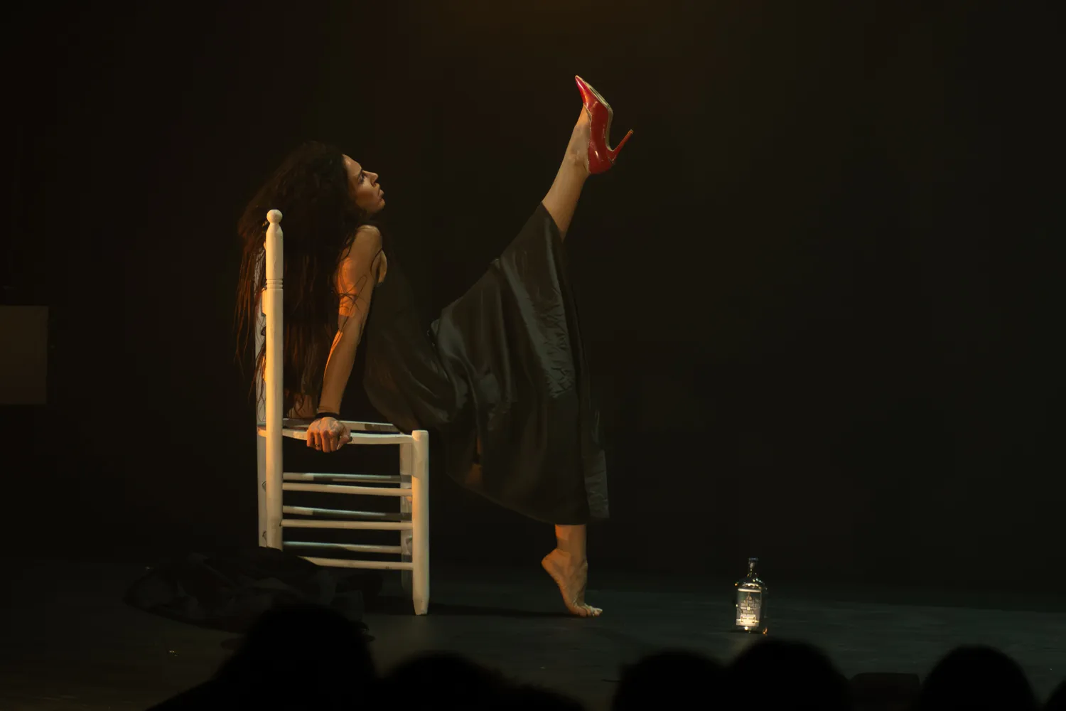 Sin embargo, dirección artística y coreografía de Eva Yerbabuena ya son palabras mayores. La creativa personalidad de la querida figura granadina que se encargó de darle forma a esta obra se ha hecho sentir en el filin de todo momento. Movimientos obsesivamente repetidos o simplemente inesperados, taconeo fuerte y limpio, la cara expresiva, la oscuridad siempre (levanta la mano, plis, si quieres que las obras de baile o danza estén mejor iluminadas).