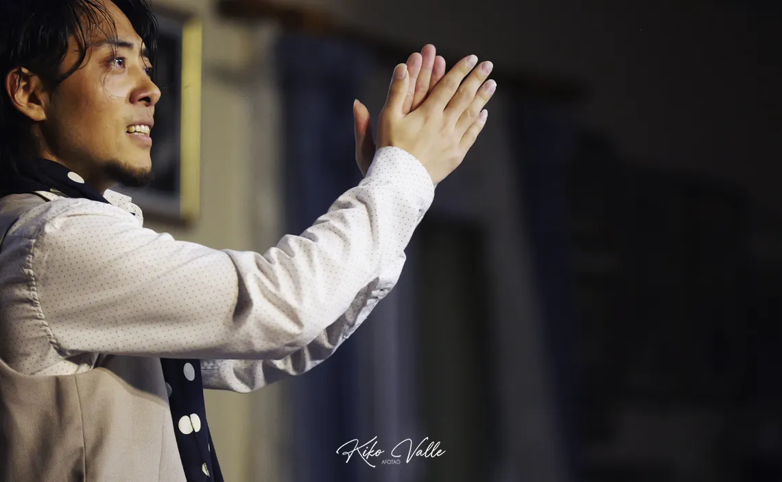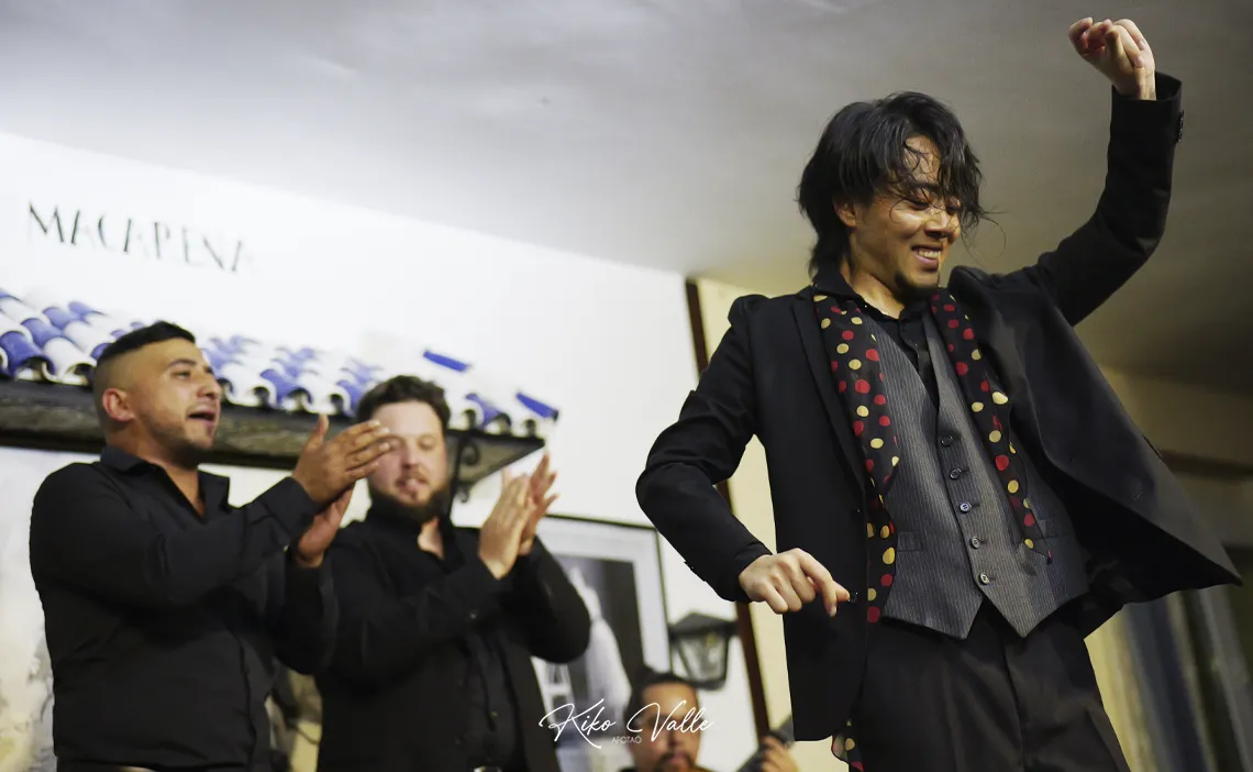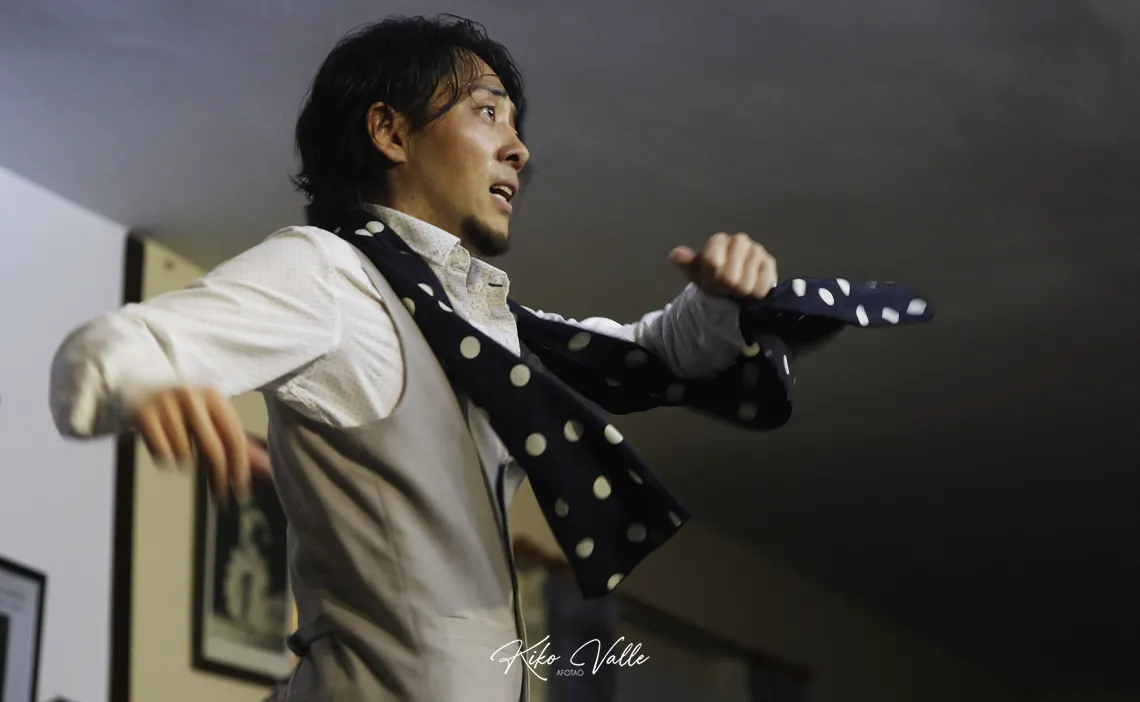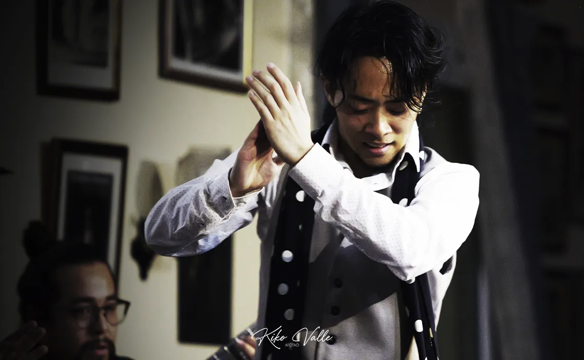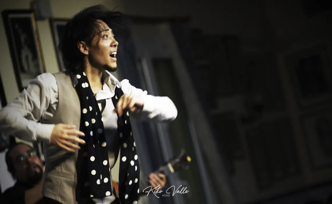 Ahora que nadie escucha… ¿Puede decir un crítico rancio en voz alta sin que se enfaden mis primos que un japonés baila gitano? Quizás me he pasao. Pero es lo que me viene al pensamiento después de lo de anoche. Salvando las distancias, por supuesto. Cogido con pinzas. Como quieran decirlo. Pero este niño lo tiene. Y permitidme lo de niño, porque solo calza 24 años y una humildad tremenda. Los flamencos nacen donde pueden. O donde quieren. Undevé los cría y ellos se juntan. Y la Peña Flamenca Torres Macarena de Sevilla los trae más en cuando que de vez apostando por lo tostaíto de la olla. En esta ocasión, lo pegaíto del wok. Fue una de esas sorpresas que te dibujan la sonrisa en la cara con la satisfacción de decir «yo estuve allí».