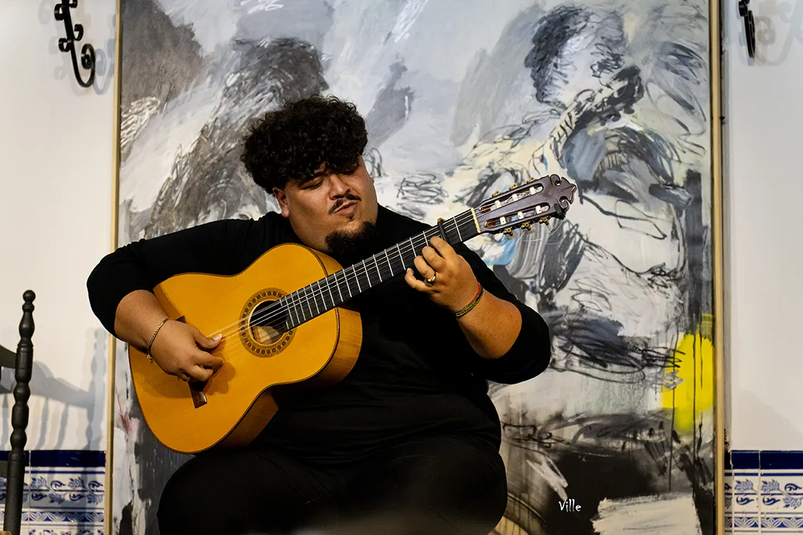 Se arropó José entre las cuerdas de Jesús Rodríguez, muy versado ya en el acompañamiento al baile y con un envidiable sentido del compás, aparte de la impronta que le imprime al ciprés con una musicalidad que embelesa y atrapa. Jesús vive el flamenco a través de la guitarra, irradia el gusto y el soniquete necesarios para robarme los oídos y llevar en volandas al cuadro. Estuvieron especialmente inspirados David El Galli, con su garganta se sedas resquebrajás y los reaños bien cargaos, y un Manuel de la Nina que lo dio todo demostrando cada día más que cuando le viene el aire rebusca en paladares de enjundia. No se les iba un cierre, ni un redoble sucio, ni una mijita del tiempo a las palmas de Emilio y El Petete. Todo apuntaba a una noche redonda. Solo falta que os hable de José Maya o la apoteosis del baile y el cante.