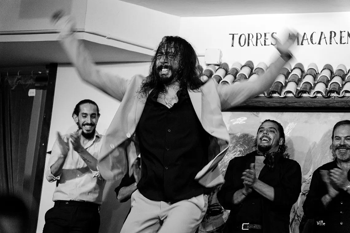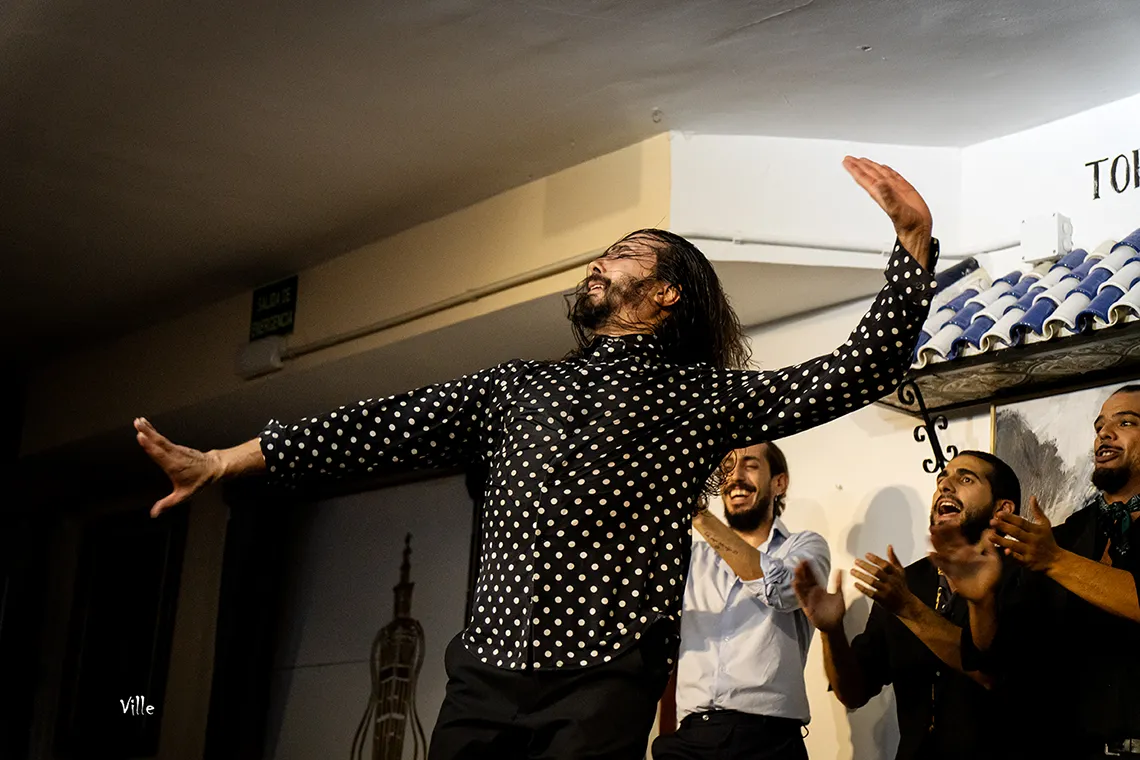 Fue curioso. El multitudinario fin de fiesta que se preveía con la cantidad de artistas que había allí y que suele ser marca de la casa no se dio. José hizo un gesto al Torombo pa que subiera y él abrió sus manos como diciendo: «Después de ti quién baila». Debajo del escenario o en los camerinos son otros códigos. Y se formó, dándole rienda suelta a la borrachera de arte a la que nos convidó José Maya con su baile y su cante. Irrepetible, sublime, apoteósico, bestial.