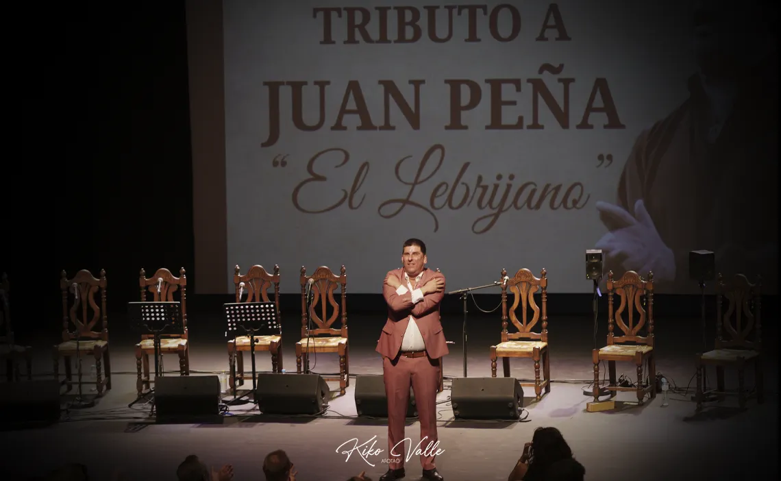 Tributo a Juan Peña El Lebrijano es un concierto que, por su éxito de aceptación popular tan desbordante, se vio obligado a anunciar el mismo día una doble función a lleno absoluto, aborda un período muy concreto de quien nunca durmió con el pensamiento de la muerte porque vivió, por un lado, para que las generaciones actuales se lo encontraran todo hecho y no perdieran de vista el porqué están viviendo días de gloria. Y de otro, para conformar una obra que, basada en la tradición, sirve para abrir la mente sin perder nuestra más preciada identidad.