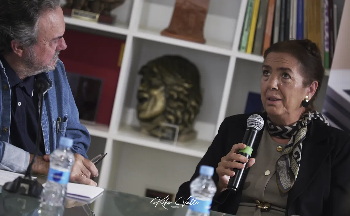 Manuel Curao se encargó de glosar a los artistas y su obra, además de moderar la mesa y entrevistar con maestría a Lole Montoya, Angelita Montoya, Jesús Molina –mánager de Lole y Manuel– y Juan Manuel Flores hijo. Luis Ybarra, actual director de La Bienal de Flamenco de Sevilla, se unió al encuentro.