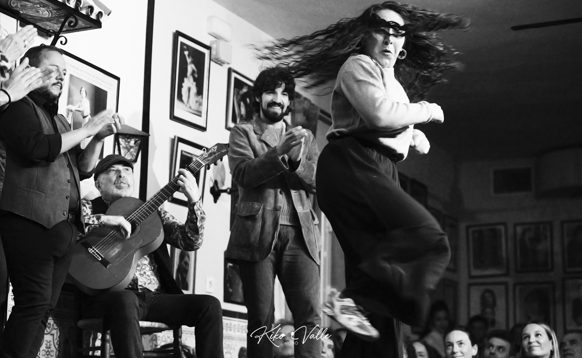 La guitarra de Rafael Rodríguez El Cabeza tuvo la mitad de la culpa. O quizás trajo él la inspiración en sus yemas y me derritió entre sus cuerdas. No se parece a nadie, ni nadie se parece a él. Aunque recuerde a la cal de Morón en sus aires o a la negritud del blues. Pero se reinventa y clava su impronta cuajando de bordoneos, tapaíllos, alzapúas, arpegios, trémolos, picaos y tiraíllos la musicalidad de una sonanta única, distinta, personal, jonda y tremendamente flamenca. Tocó pa comerle las manos, pa besarle ca uno de sus deítos y santificar la bendita sensibilidad que permite el regalo de escuchar su toque. Me entregué a la ceremonia pasional del diálogo con el baile y me hicieron llorar de emoción.