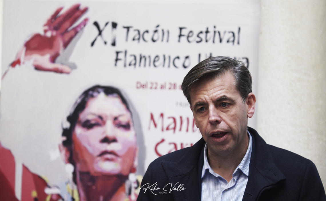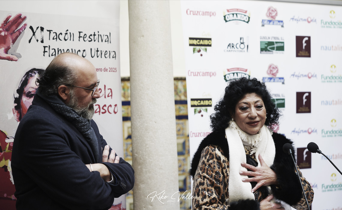 Manolito Pelusa, presidente de la asociación El Compás que nos une, se deshizo en agradecimientos a los patrocinadores, al Ayuntamiento, a los artistas participantes, a Manuel Tagua por la web y a Rafael Guerrero García, autor del cartel. Insistió en que «la asociación nació con el propósito de preservar, promover y difundir el baile flamenco en Utrera». Algo que ha venido haciendo con «conferencias, talleres, charlas y espectáculos con el firme objetivo de acercar el flamenco a todos los públicos, siendo El Tacón Flamenco el fruto más visible de este esfuerzo. Desde 2013 el festival viene afianzándose atrayendo a aficionaos del mundo entero. Este año, rinde tributo a una leyenda viva del baile flamenco, una de las figuras más emblemáticas y veneradas de lo jondo que ha paseado su arte de pureza indiscutible por los escenarios más importantes del mundo, compartiendo tablas con Camarón, Angelita Vargas, El Güito, El Lebrijano, Fernanda y Bernarda de Utrera, La Paquera o su cuñada La Susi, y habiendo sido galardonada con múltiples premios como el Nacional de Danza o la Medalla a las Bellas Artes».