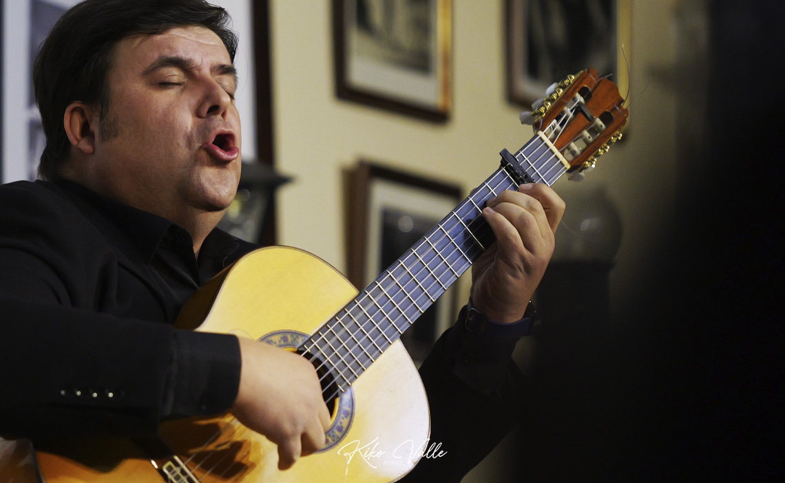 Fue un día de celebraciones y de hermanamiento. Las peñas flamencas La Bambera y Torres Macarena se unieron para conmemorar un año del nacimiento de la primera y los cincuenta de la otra. Hubo un guiso de papas con chocos, buena compañía, tertulia, cante y toque desde el mediodía hasta la noche. Se cerró con el recital del excelente cantaor manchego, que agradeció que lo llamaran y se mostró entregadísimo desde que pisó los maderos del ensolerado templo del flamenco de Sevilla.