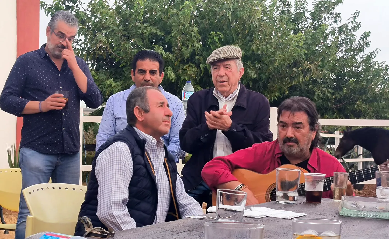 Es el caso de La Casa del Arte Antonio Mairena, que organiza una reunión de convivencia con socios, simpatizantes, artistas y personalidades del mundo del flamenco con quienes tienen cierta afinidad por las razones que sean. Basta una olla de garbanzos con menudo y buenos caldos, refrigerio, un picoteo, dulces y la gente que tiene que estar. En esta ocasión fue en la Finca La Gabriela, del amigo Chelu Morales que, junto a Manuel Jiménez Ríos, presidente de la peña, y la buena gente de la que se rodea en su junta, no pudo ser mejor anfitrión.