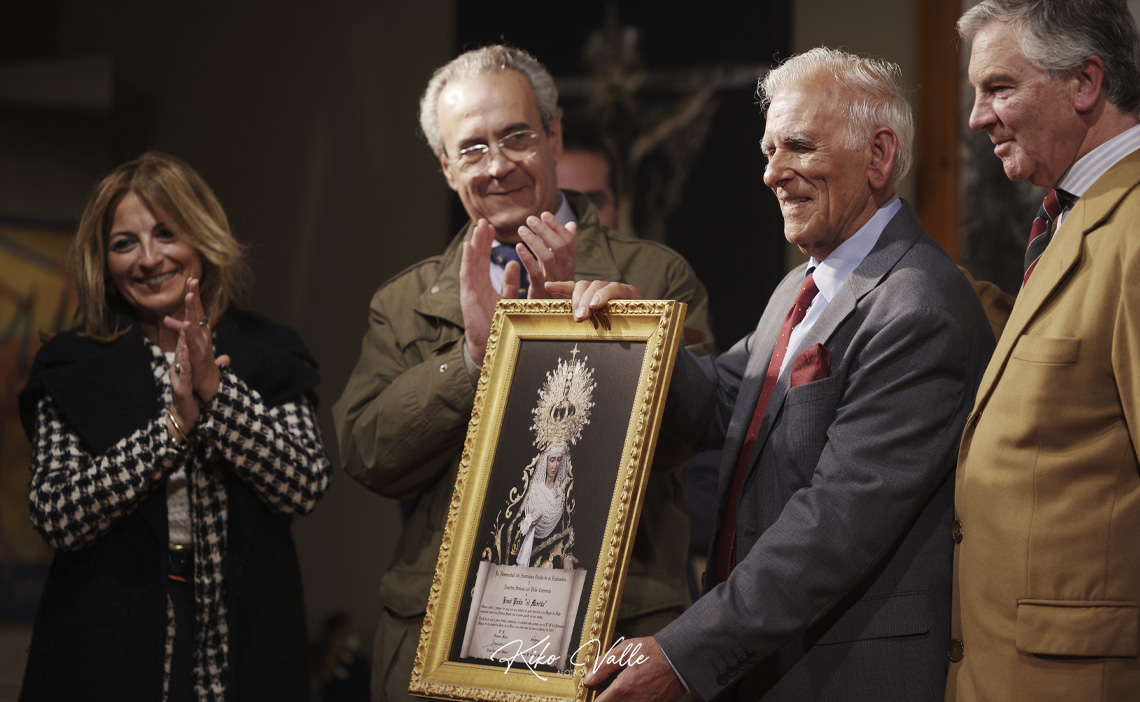 Tras el descanso, la Junta de Gobierno de la Hermandad del Cristo de la Expiración con su Hermano Mayor Jesús Rodríguez a la cabeza, además de Sebastián Romero y Carmen Cobano, quiso agradecer todo lo que El Morito les ha dado en forma de saetas a su Virgen del Valle haciéndole entrega de la patente, un cuadro con su imagen.