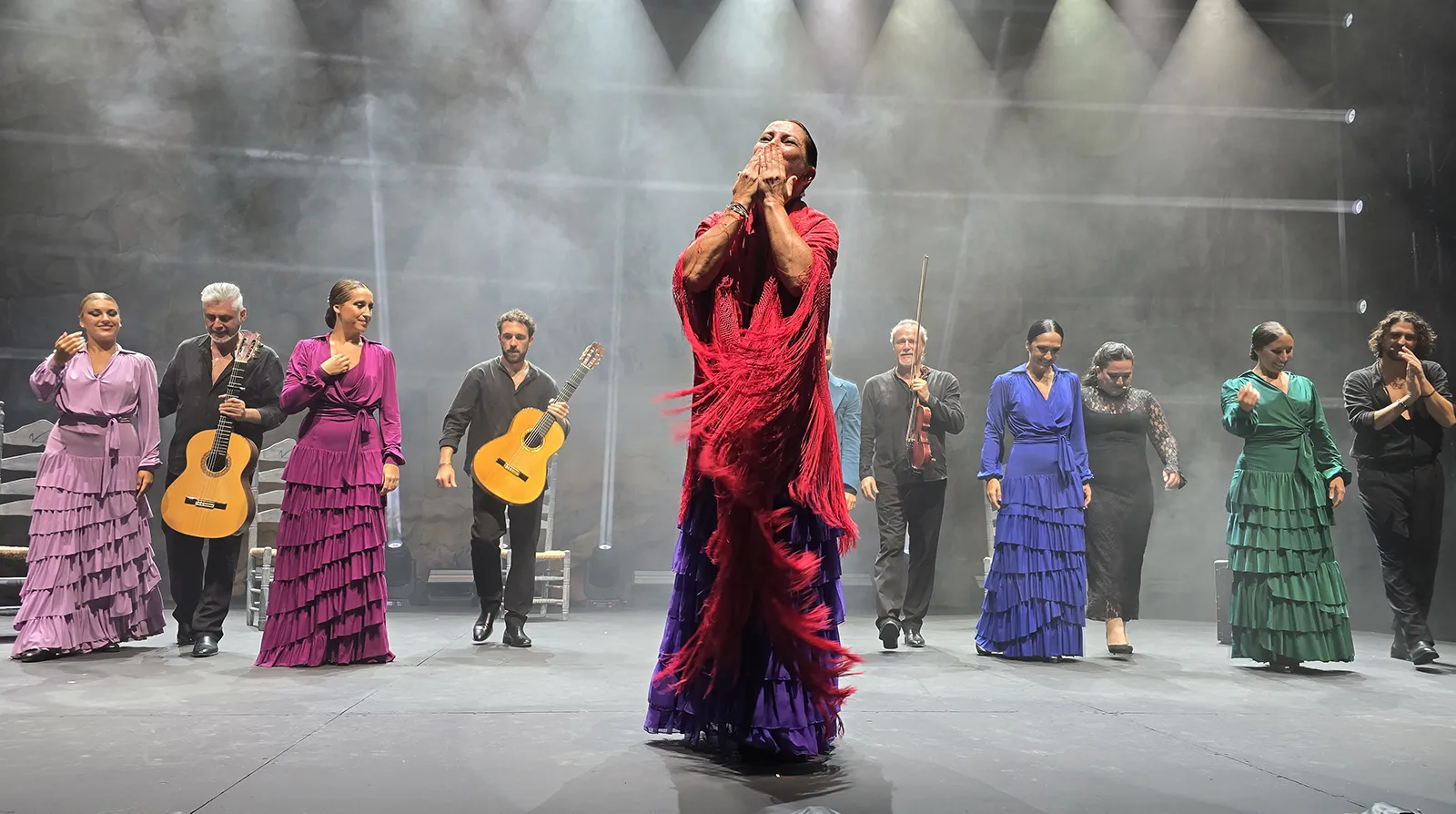 También en el vestuario, con líneas sencillas, sin faldas vaporosas, ni elementos empalagosos. Pantalón como es costumbre, batas de cola con pies descalzos, redes de pescador a modo de mantones o garrotes nos acompañan en este viaje por rondeñas, tientos, minera, seguiriya, alegrías, saeta, soleá, tangos, fandangos y hasta quince piezas musicales. Un repertorio muy completo, flamenco por los cuatro costados, rico en composición y sin aditivos innecesarios. Una vez más, la magia de Keko Baldomero junto a unos músicos solventes hace volar desde el inicio. Y lo bien que canta Matías López El Mati, esa espléndida Lámpara Minera de 2019 que retuerce las entrañas.