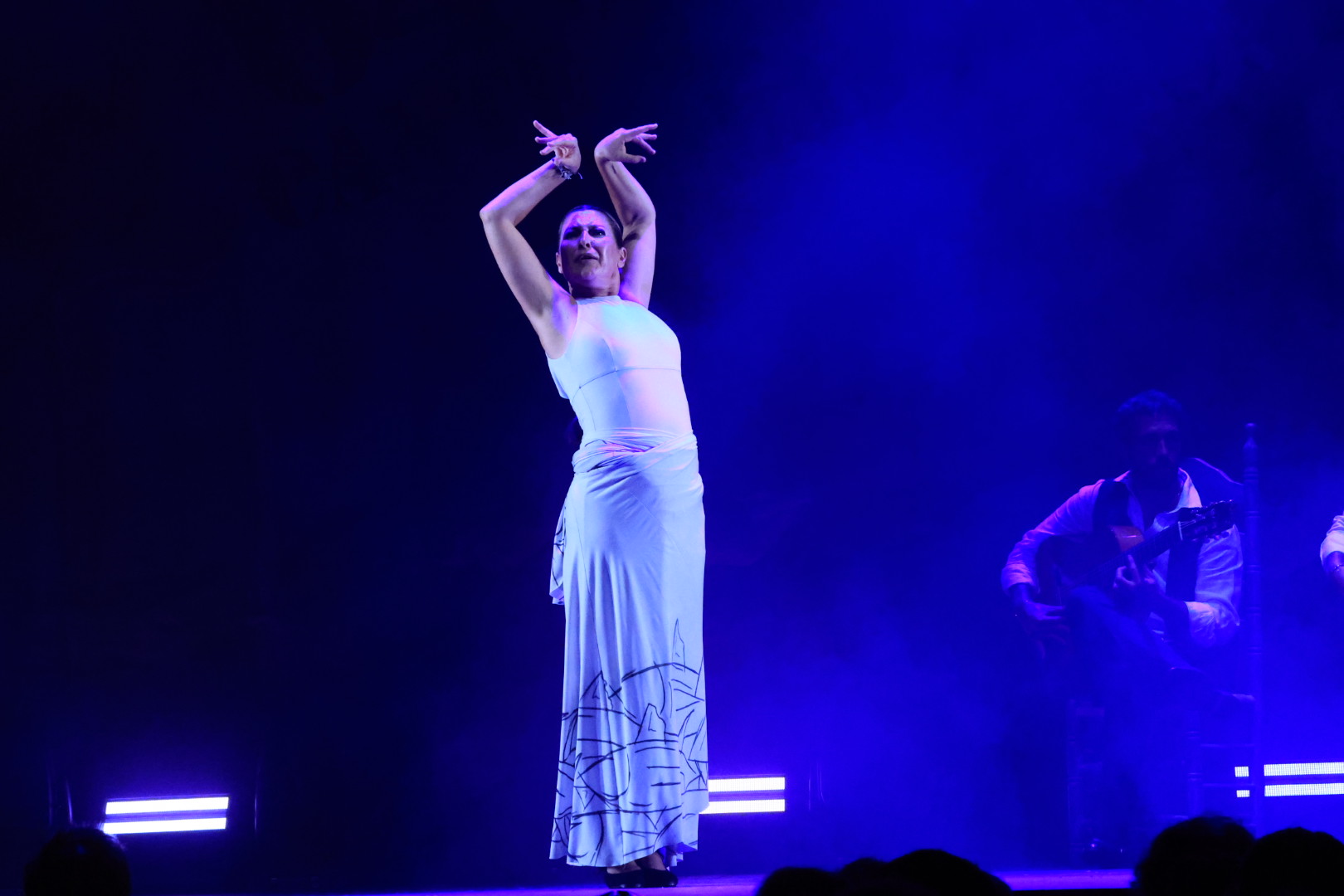 Sara Baras ya no es una mocita, como la primera vez que visitó La Unión a finales de los noventa. Se ha forjado en escenarios de todo el mundo con espectáculos que creímos insuperables. Sin embargo, no lo han sido. De sobra conocemos su modo de entender el flamenco. Y en este espectáculo se sumerge en emociones hasta ahora poco explotadas. Tras la pérdida de su padre y de Paco de Lucía, Sara le baila al duelo de un modo profundo. Le da protagonismo a la expresión, al silencio. Qué importante es el silencio, cómo baila a esa ausencia de música y emociona desde la quietud. La artista gaditana ha plasmado ese trasiego que va de lo terrenal a lo espiritual, transita esa partida con madurez y amor hacia sus seres queridos. Es algo íntimo y natural que desgrana en cada minuto de las casi dos horas de espectáculo. Una lección de vida y de muerte de mano de una de las mejores bailaoras que ha parido el flamenco.