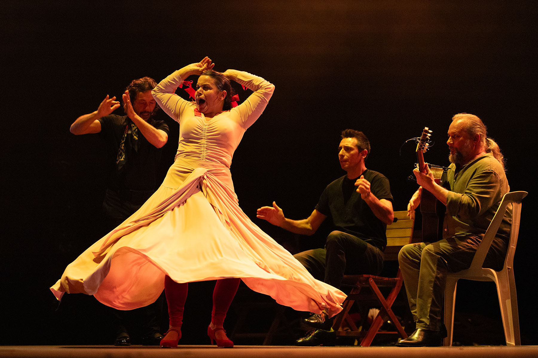 El juego con el mantón en un silencio que subraya la suprema habilidad de Moreno con este instrumento, como luego hará con los palillos en la potente seguiriya; el vertiginoso duelo de compás con Roberto Jaén, quien por cierto se pegó también una pataíta de categoría; las guitarras de Raúl Cantizano, la flamenca como la eléctrica, prestando un cauce sonoro fundamental para que discurran las distintas temperaturas del montaje; y ese Miguel Lavi que lo canta todo bien, desde un villancico a una saeta de campeonato… Todos participan de un ambiente de comunión poco frecuente, reunidos en un espíritu cómplice, casi familiar, que acaba contagiando al patio de butacas. Cuando queremos darnos cuenta, estamos todos metidos en él, y sin querer que acabe.
