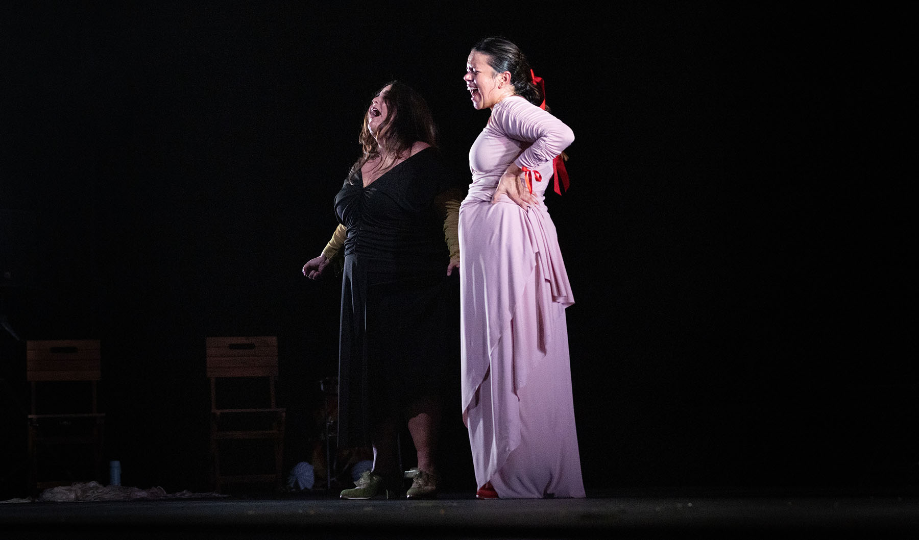 Con siete montajes ya a sus espaldas con su compañía, la gaditana demuestra en este nuevo trabajo que cuando una puerta se cierra, otra mejor puede abrirse. Un proyecto frustrado inspirado en la música sacra acabó sugiriéndole la idea de Magnificat, que es el canto que la Virgen María elevó en la visitación de su prima Isabel, estando ambas embarazadas. Pero no crean que esto va de rezar, o no en el sentido en que suelen entenderlo los creyentes. Aquí no hay velas ni incienso, sino lo que parecen los vestigios de una verbena, con sillas invertidas y guirnaldas descolgadas. Parece que la juerga se ha acabado, pero no hará más que empezar…