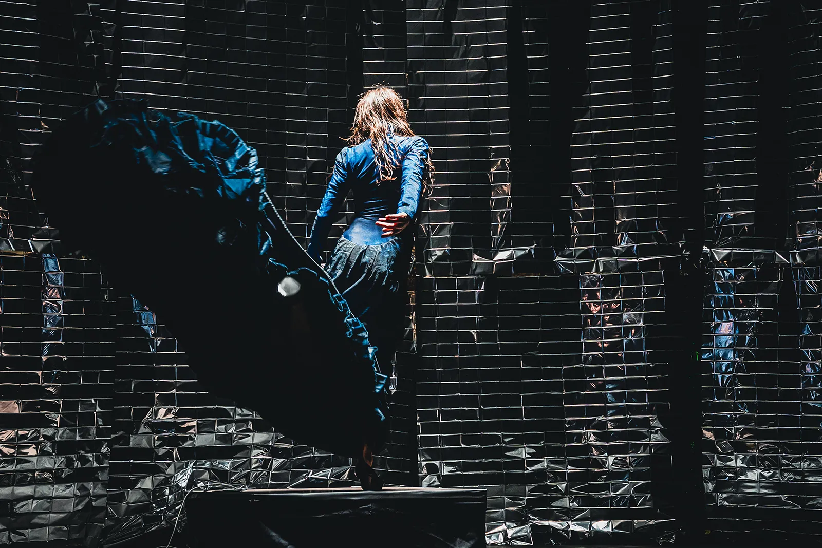 El hielo no solo comparece sobre el torso de Aibar. La jienense toma entre sus manos gruesos bloques y los arroja contra el suelo para que se vayan desintegrando en mil pedazos. Los que queden, los irá pisoteando, o machacando con el tacón de su zapato blandido como un martillo. El ejercicio inicial de contención, de control y perfección geométrica, contrasta con la violencia de esos arrebatos. Estamos acostumbrados a ver el escenario como un lugar de creación, no de destrucción, y al mismo tiempo nos hipnotiza la descomposición de esos gruesos cristales de agua congelada. La parálisis va a ser conjurada, la rabia va a ir tomando su cauce.