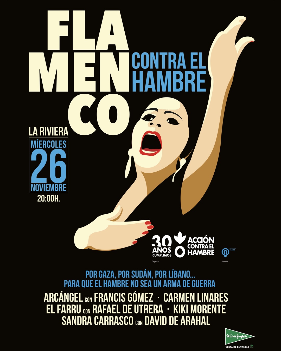 Con motivo de su 30º aniversario, Acción contra el Hambre organiza el evento Flamenco contra el Hambre, una cita única que une cultura, arte, música y compromiso social. El concierto será el miércoles 26 de noviembre a las 20 h en la emblemática sala La Riviera de Madrid.