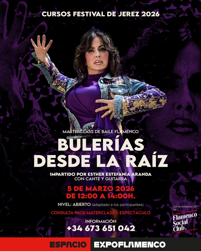 Nota de interés: Para mayor información, reservas y precios de cada uno de los talleres os dejamos este correo electrónico: espacio@expoflamenco.com. Con la referencia: Cursos Festival de Jerez 2026. Escríbenos y te contestaremos rápidamente. Te informaremos de precios y ma manera de asegurar tu plaza.